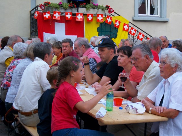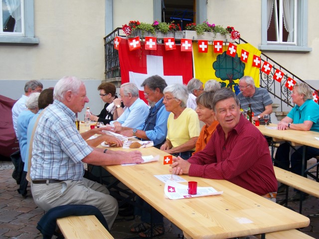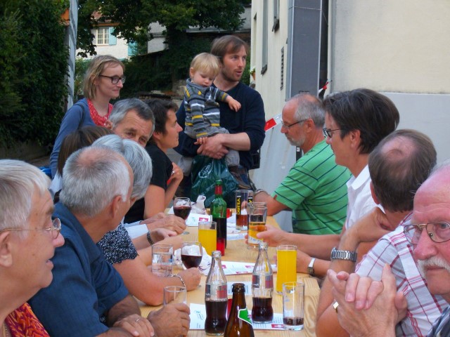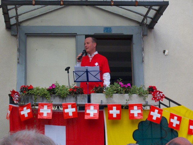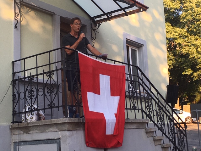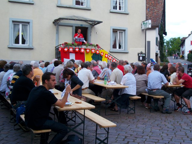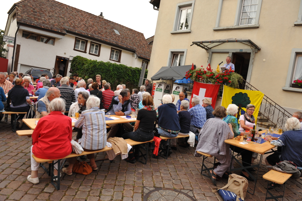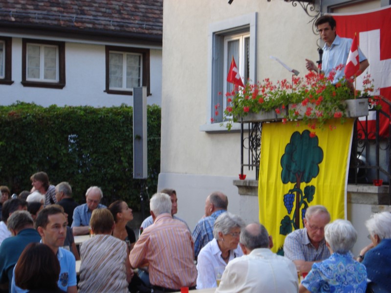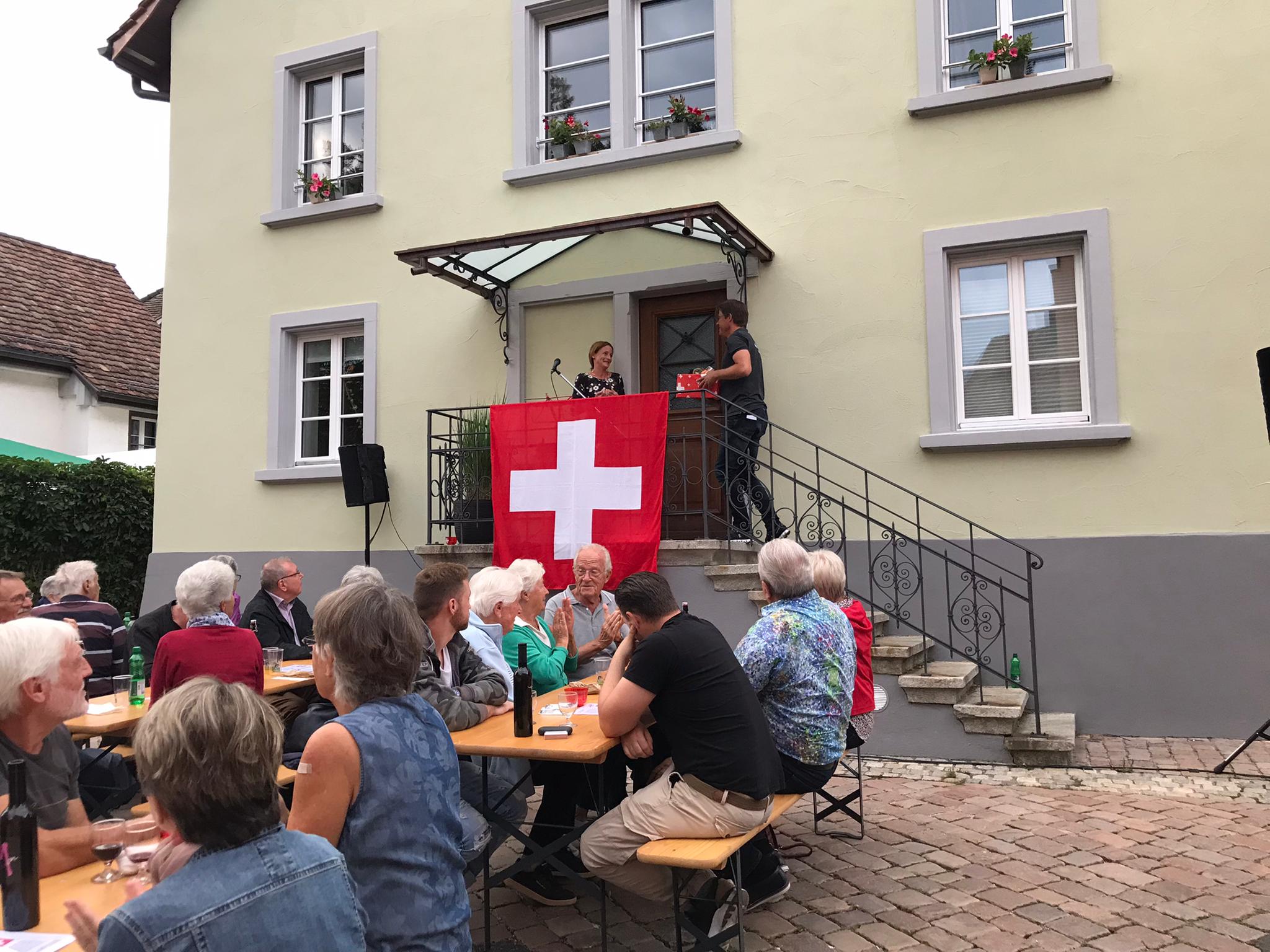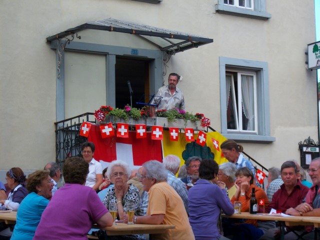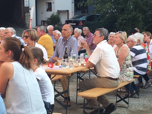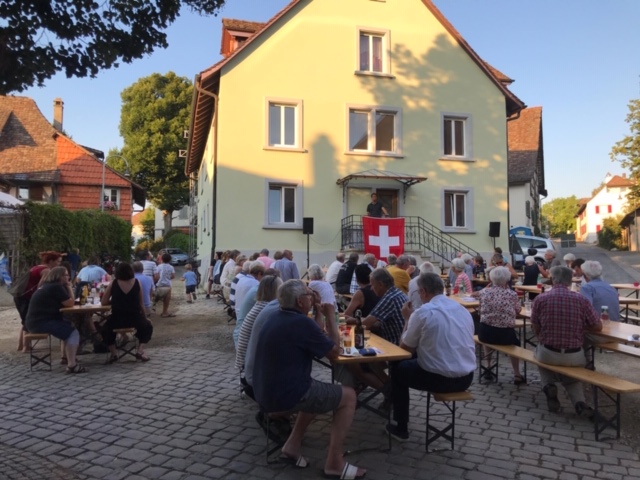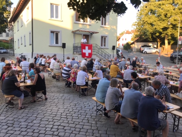 Bei trockenem Wetter und gemütlicher Atmosphäre hielt der Stadtrat Marco Planas die Festansprache an der traditionellen Bundesfeier. Das Restaurant Frohsinn hat uns mit Getränken versorgt und die Brodi war fein.
