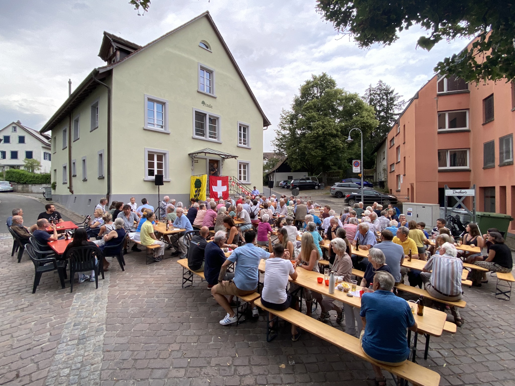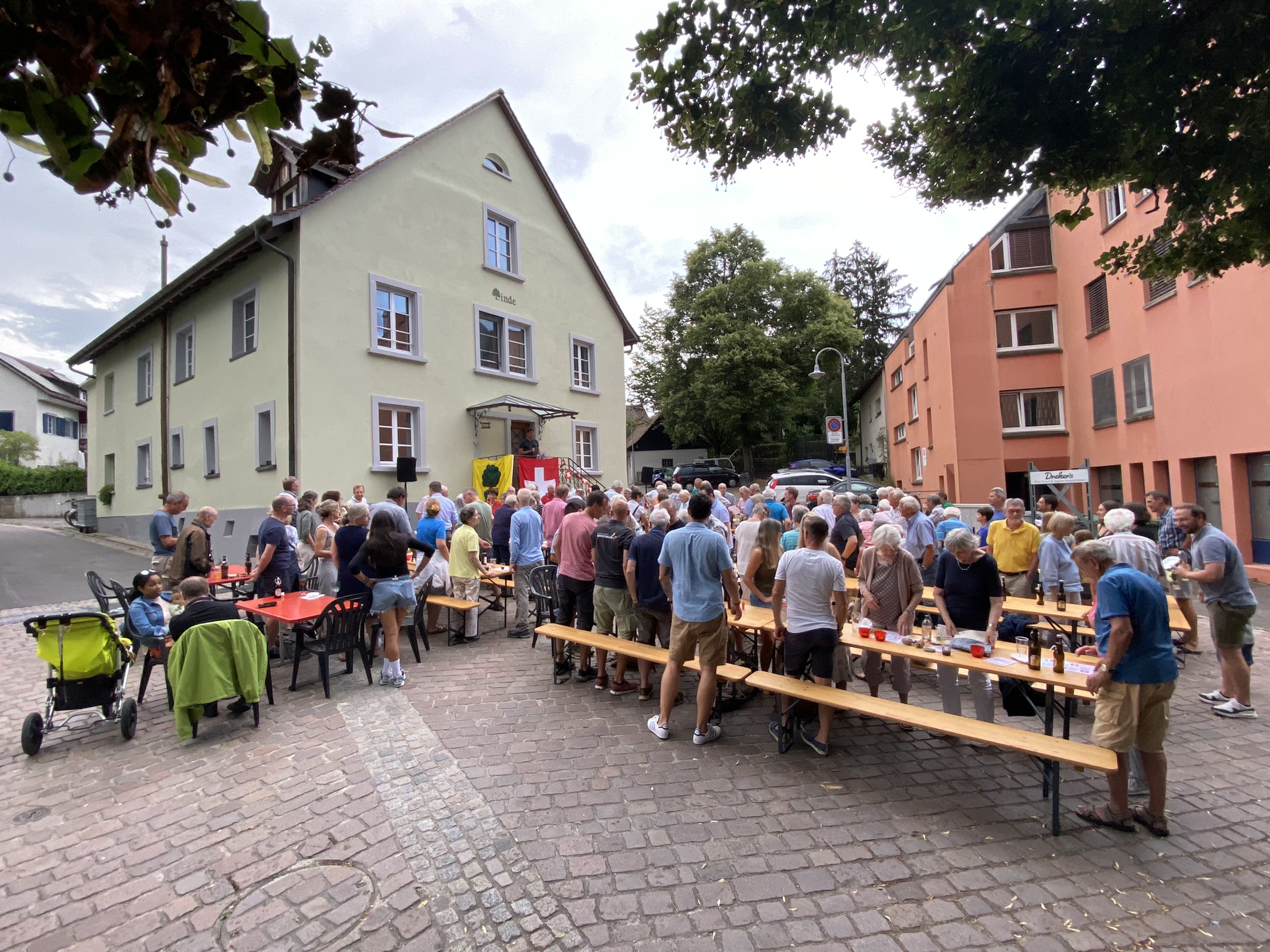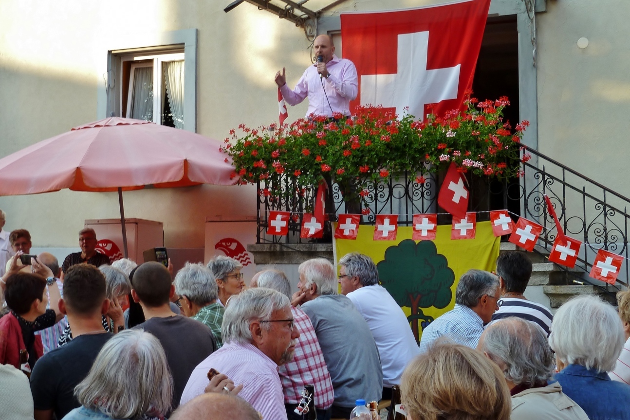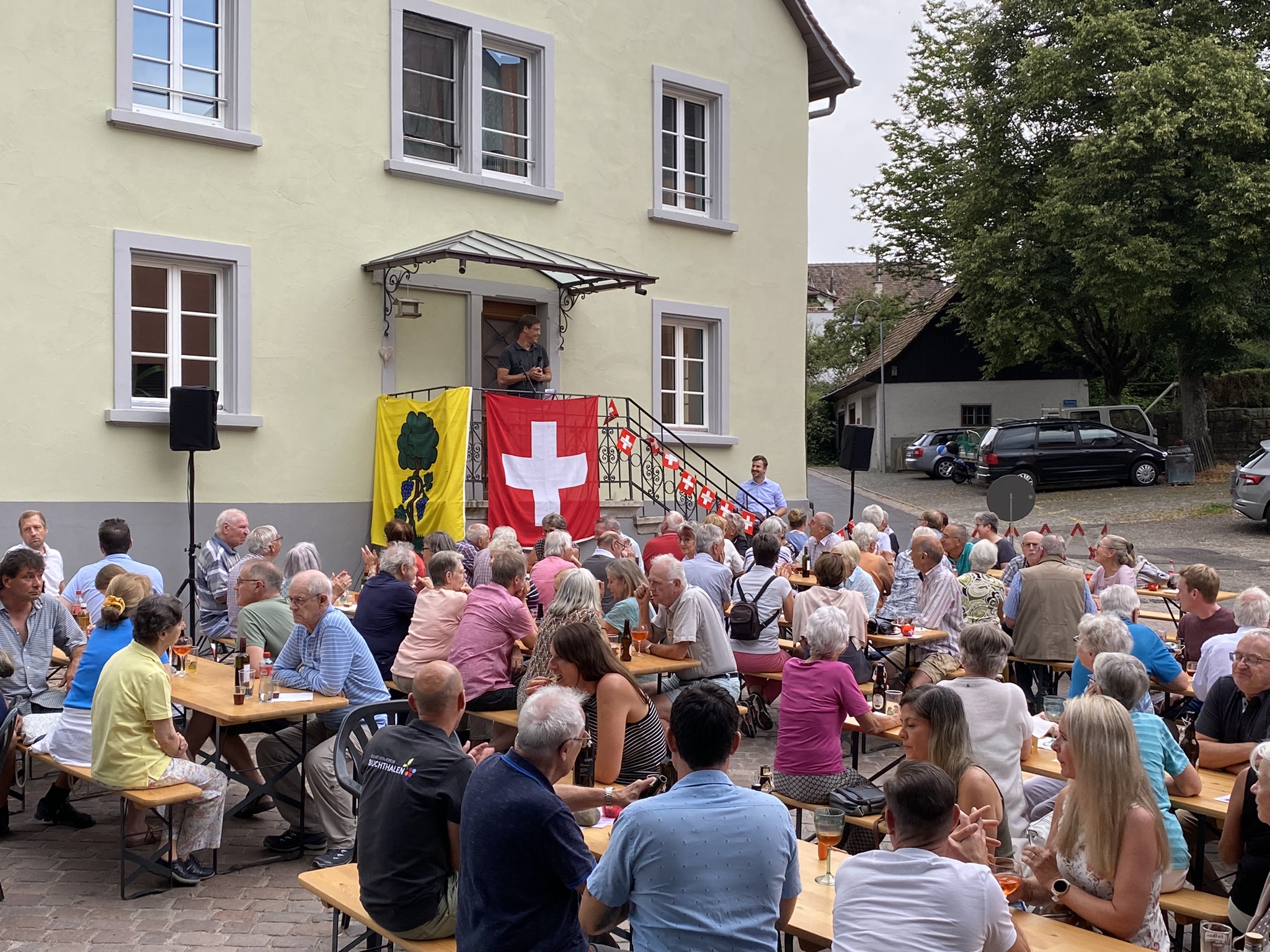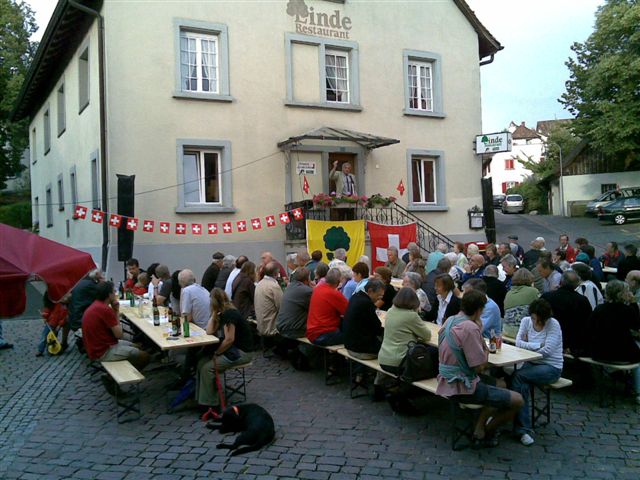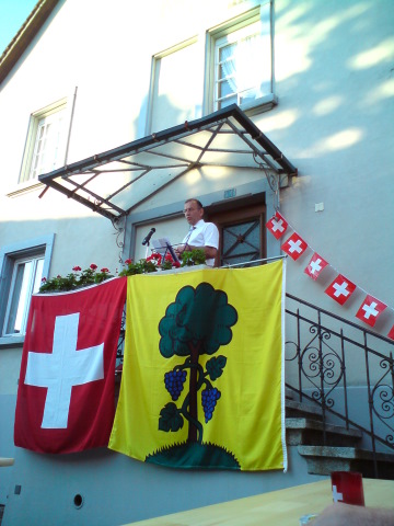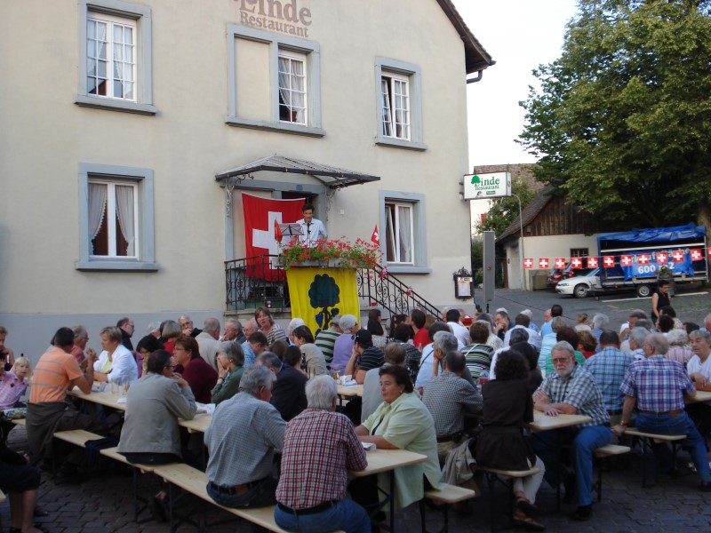 Bei trockenem Wetter und gemütlicher Atmosphäre hielt der Stadtrat Marco Planas die Festansprache an der traditionellen Bundesfeier. Das Restaurant Frohsinn hat uns mit Getränken versorgt und die Brodi war fein.