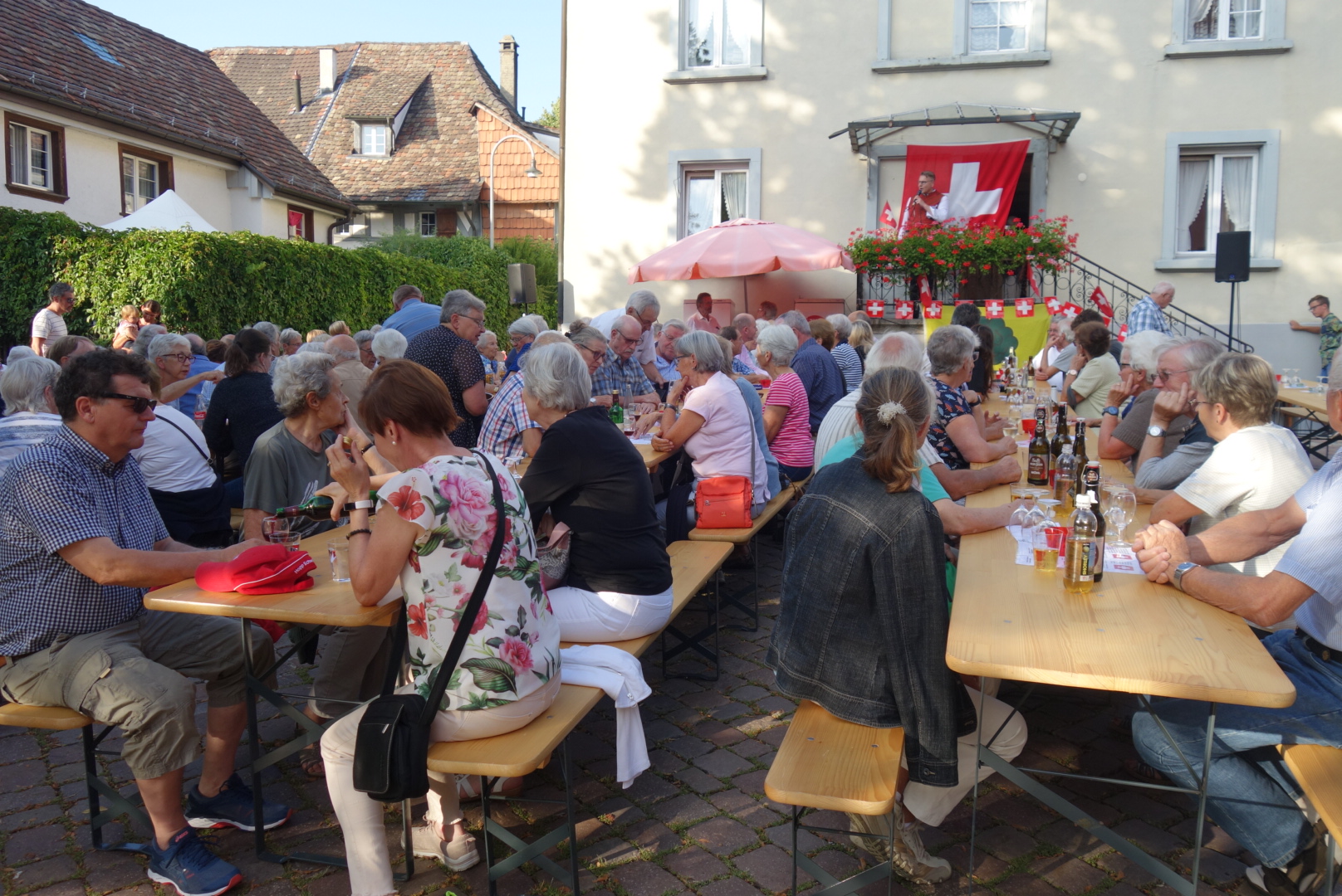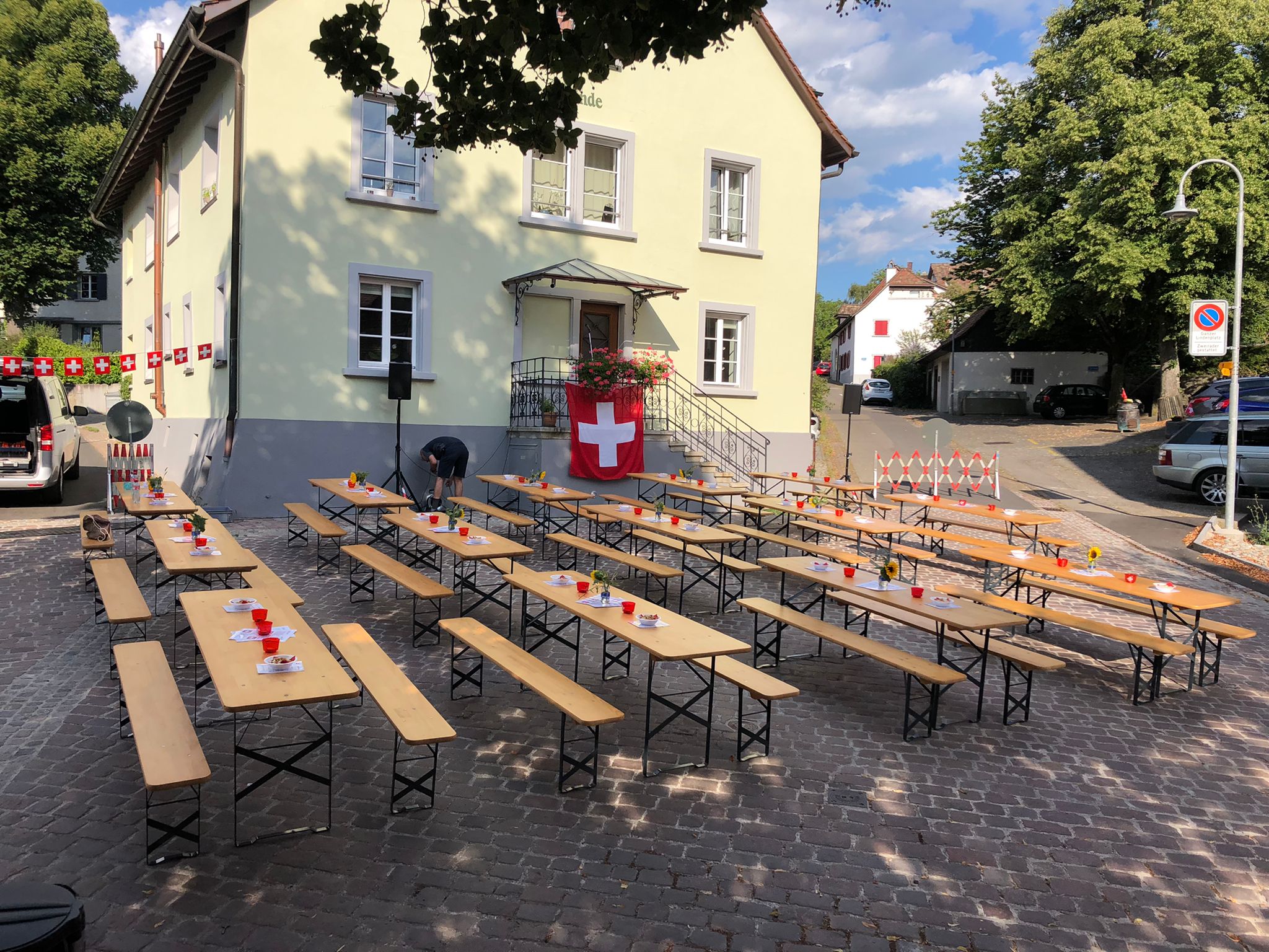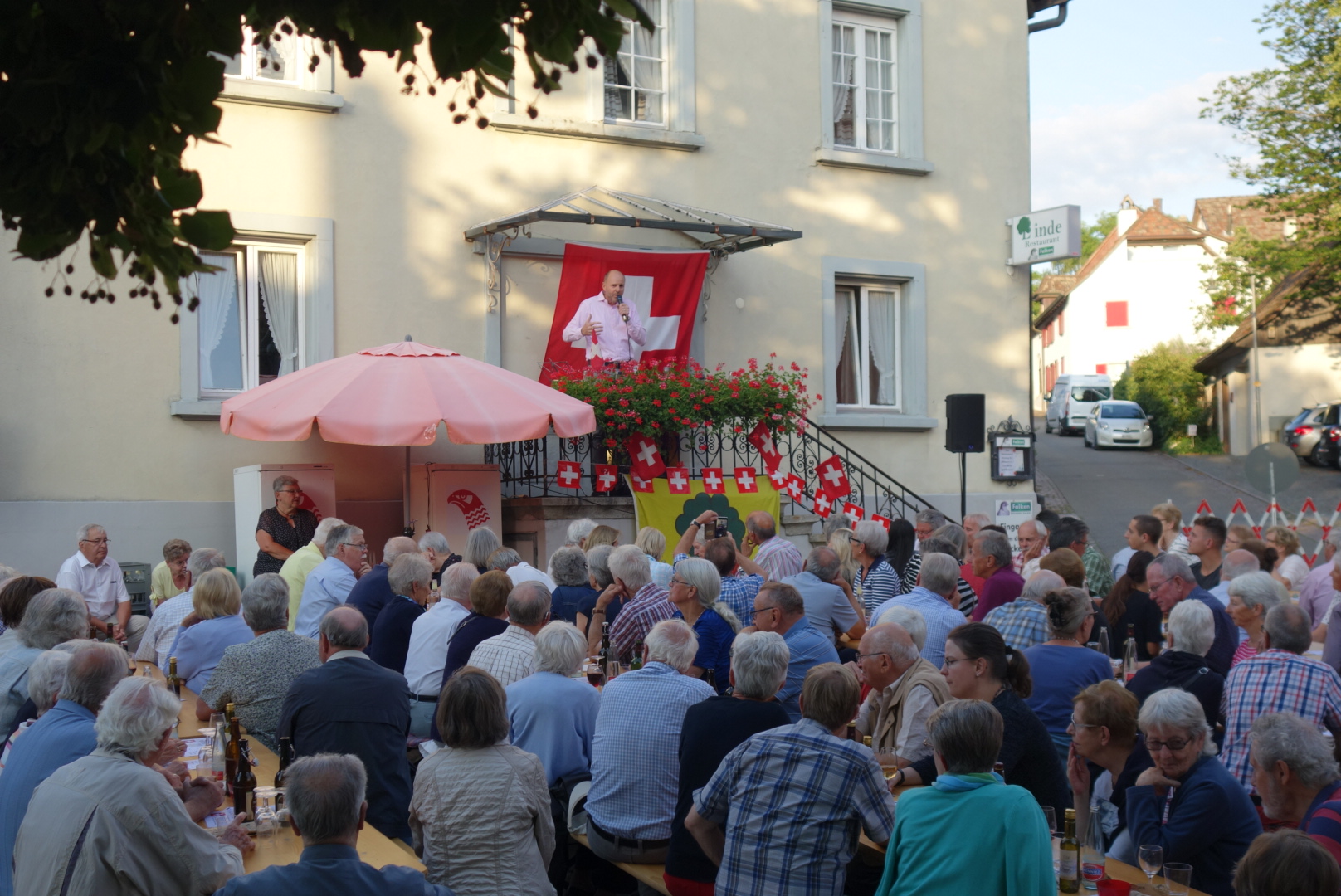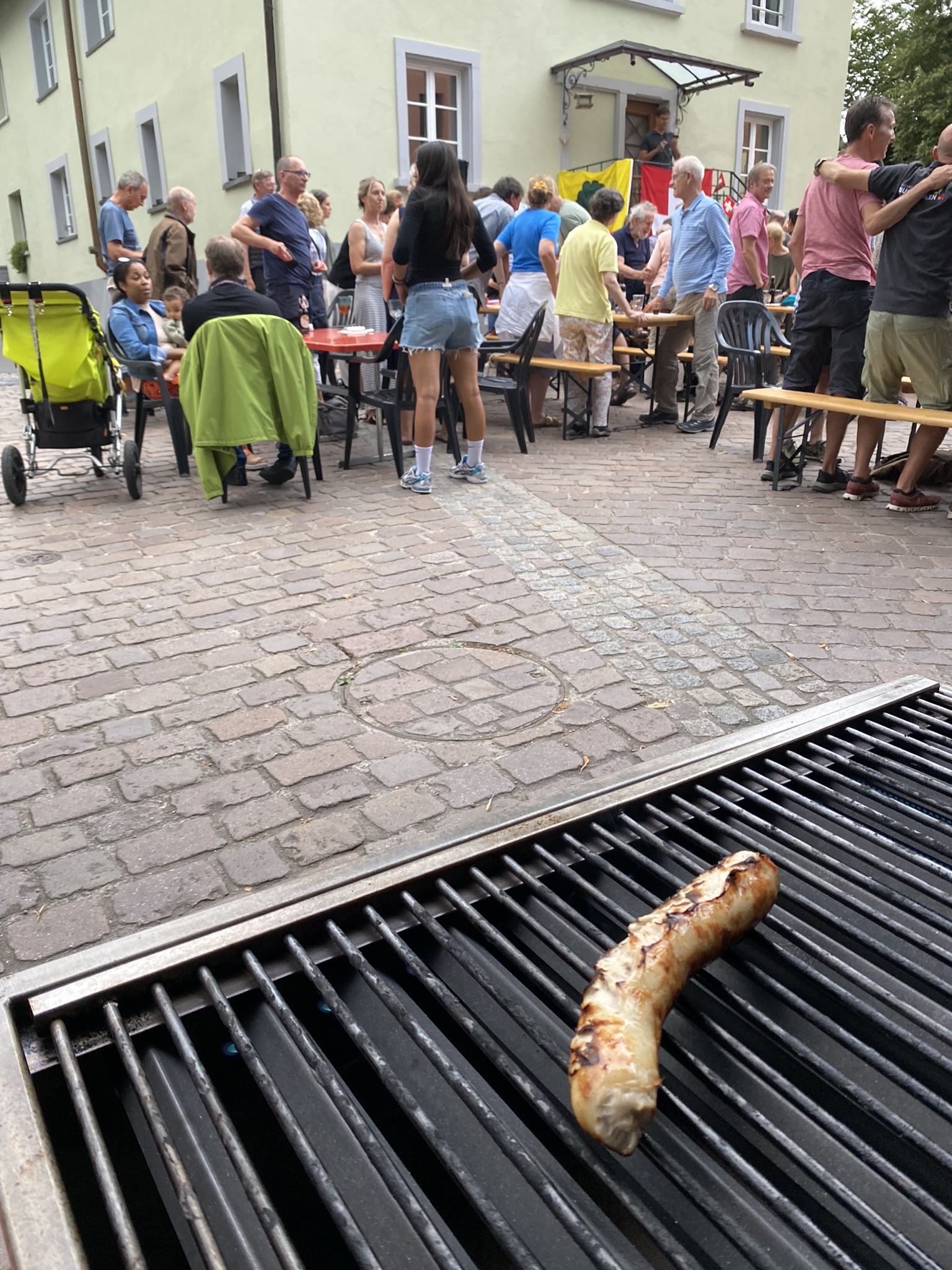 Bei trockenem Wetter und gemütlicher Atmosphäre hielt der Stadtrat Marco Planas die Festansprache an der traditionellen Bundesfeier. Das Restaurant Frohsinn hat uns mit Getränken versorgt und die Brodi war fein.