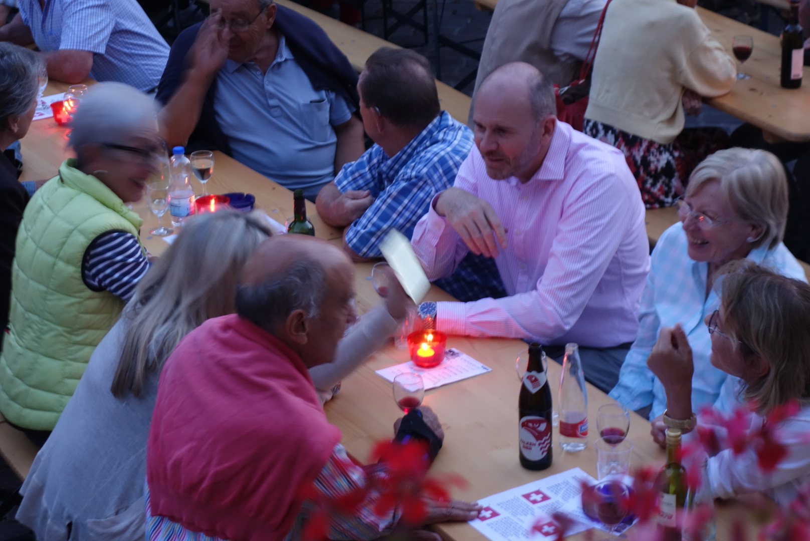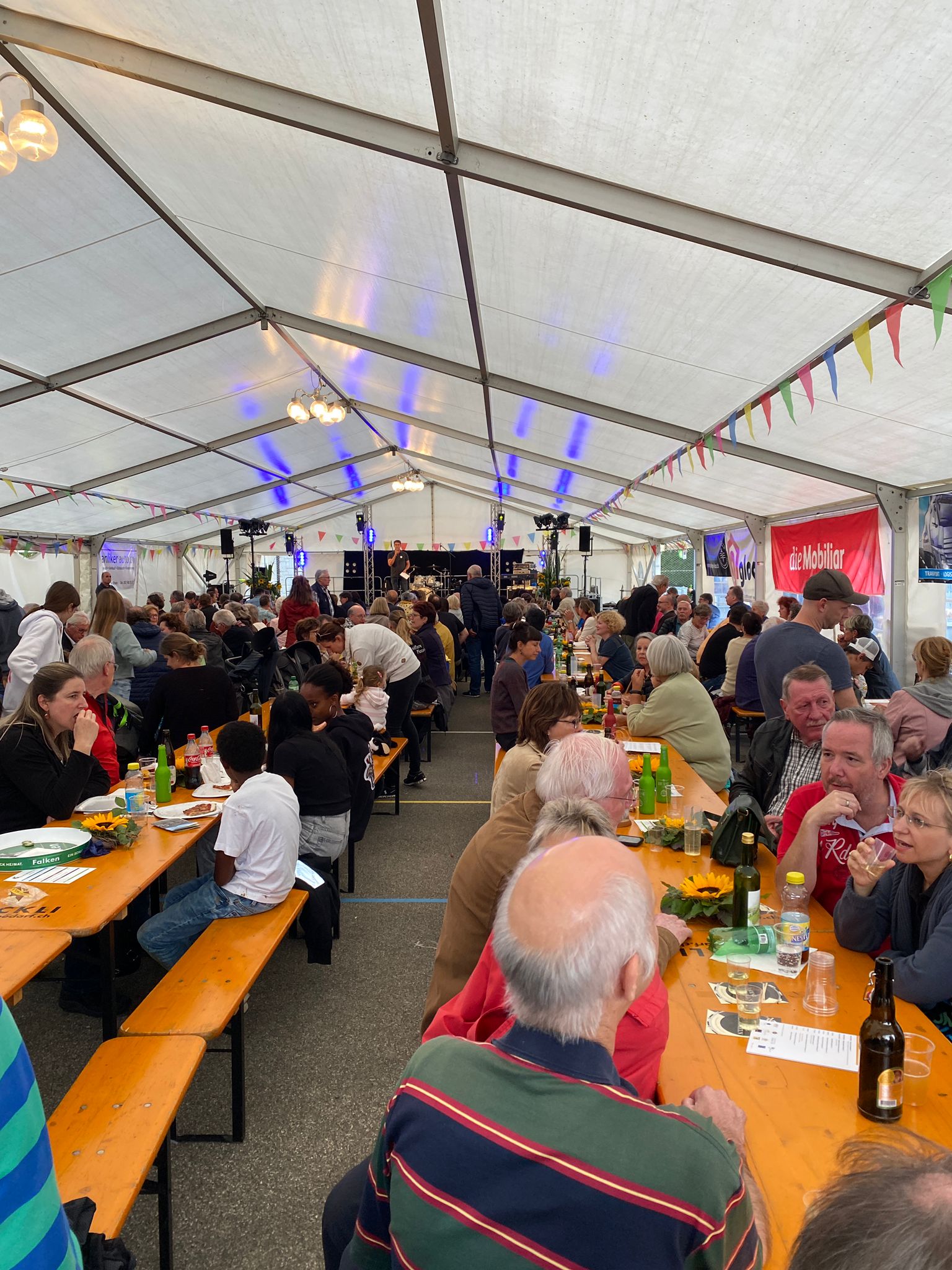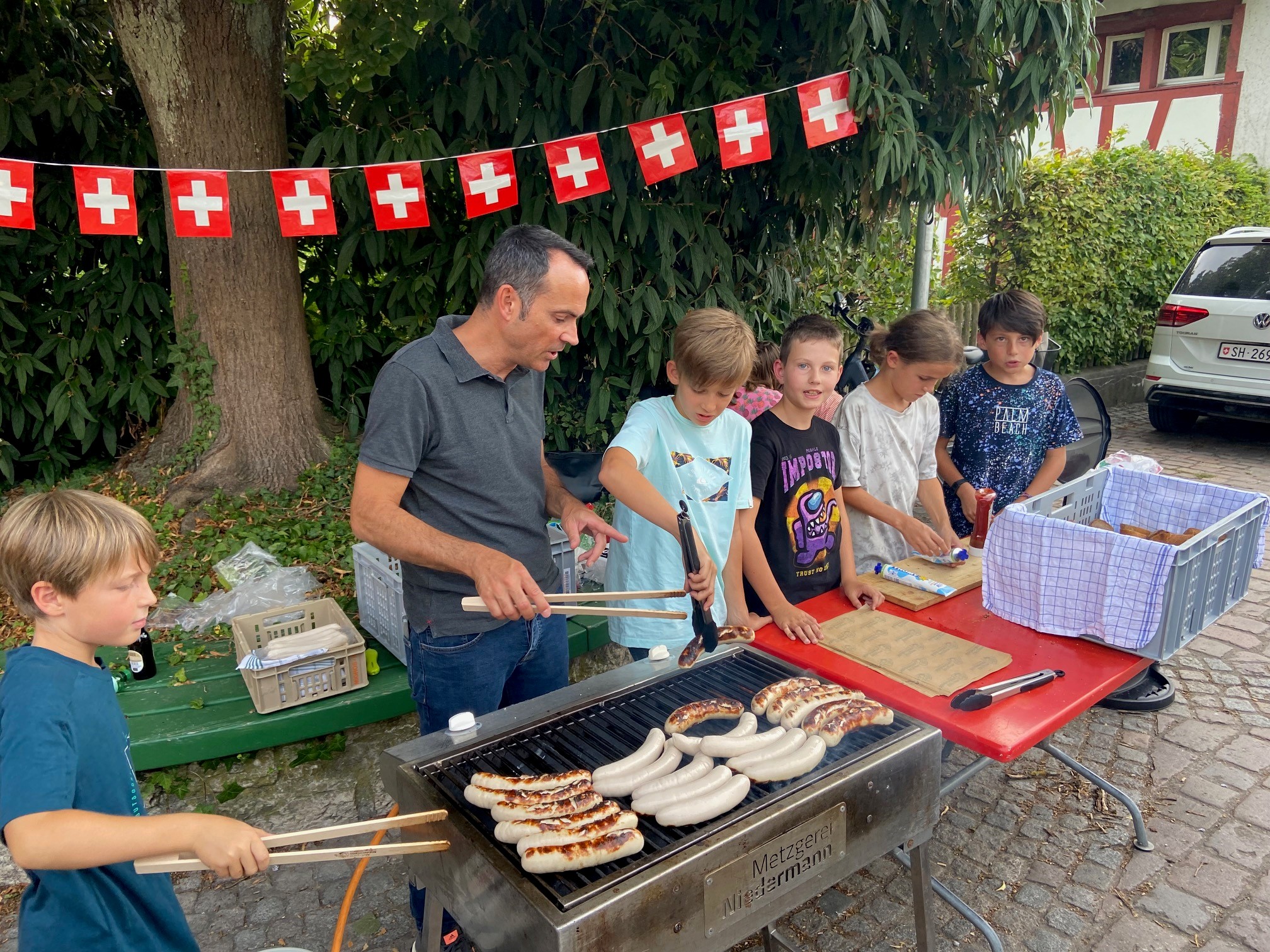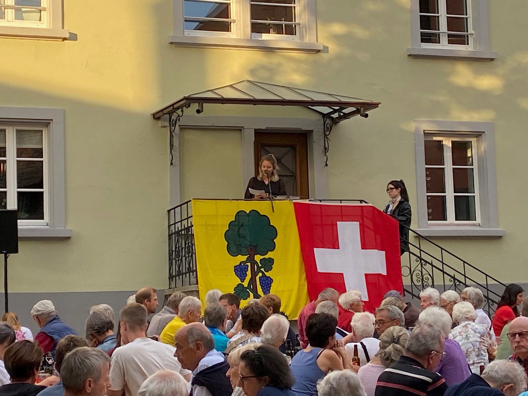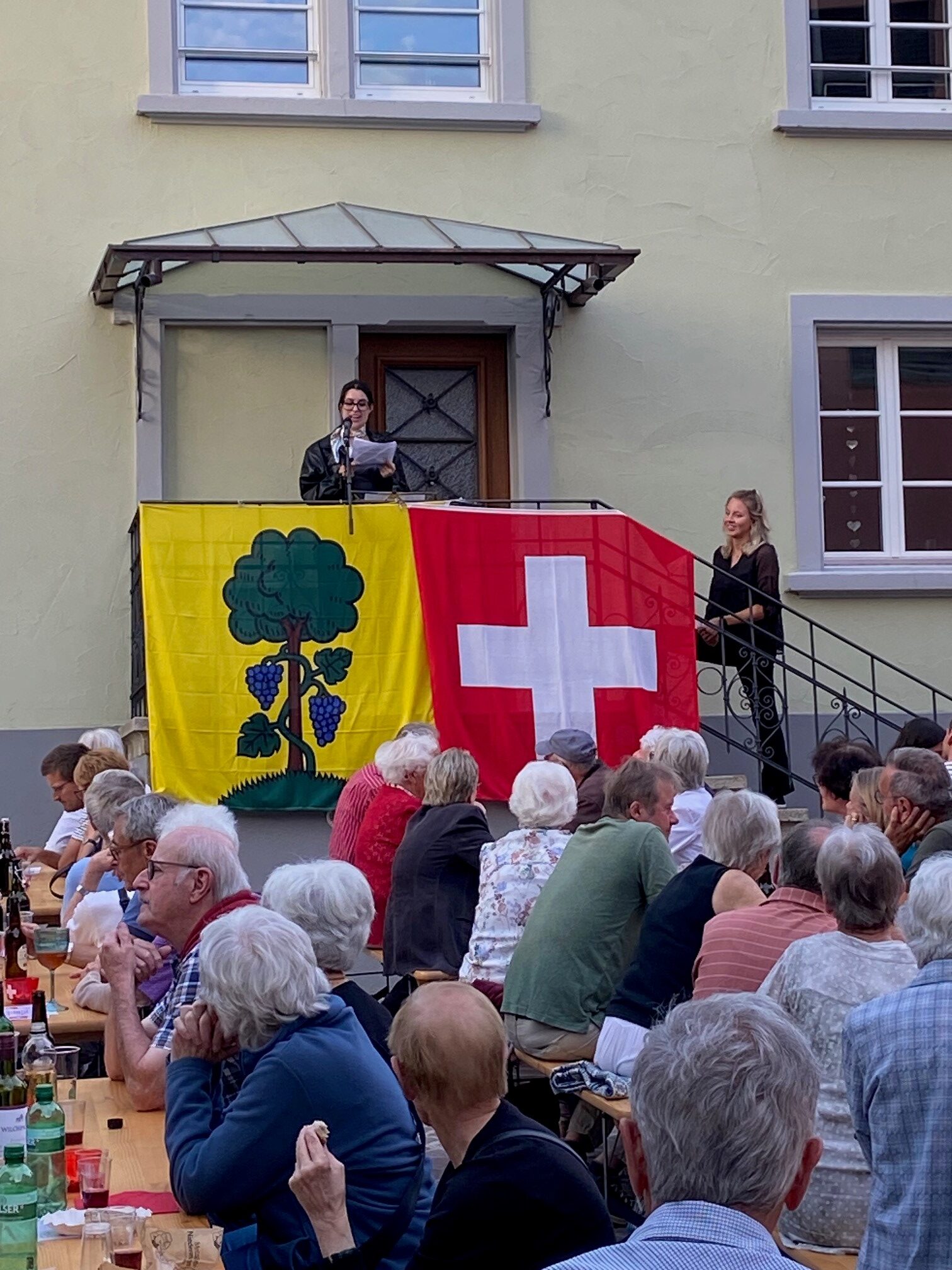 Bei trockenem Wetter und gemütlicher Atmosphäre hielt der Stadtrat Marco Planas die Festansprache an der traditionellen Bundesfeier. Das Restaurant Frohsinn hat uns mit Getränken versorgt und die Brodi war fein.