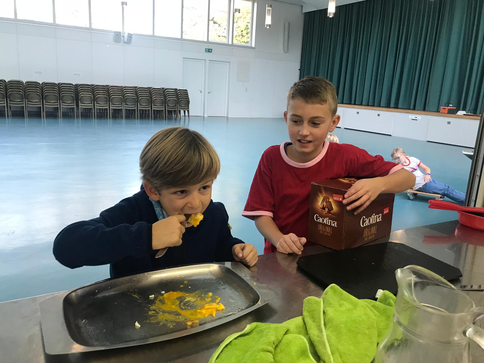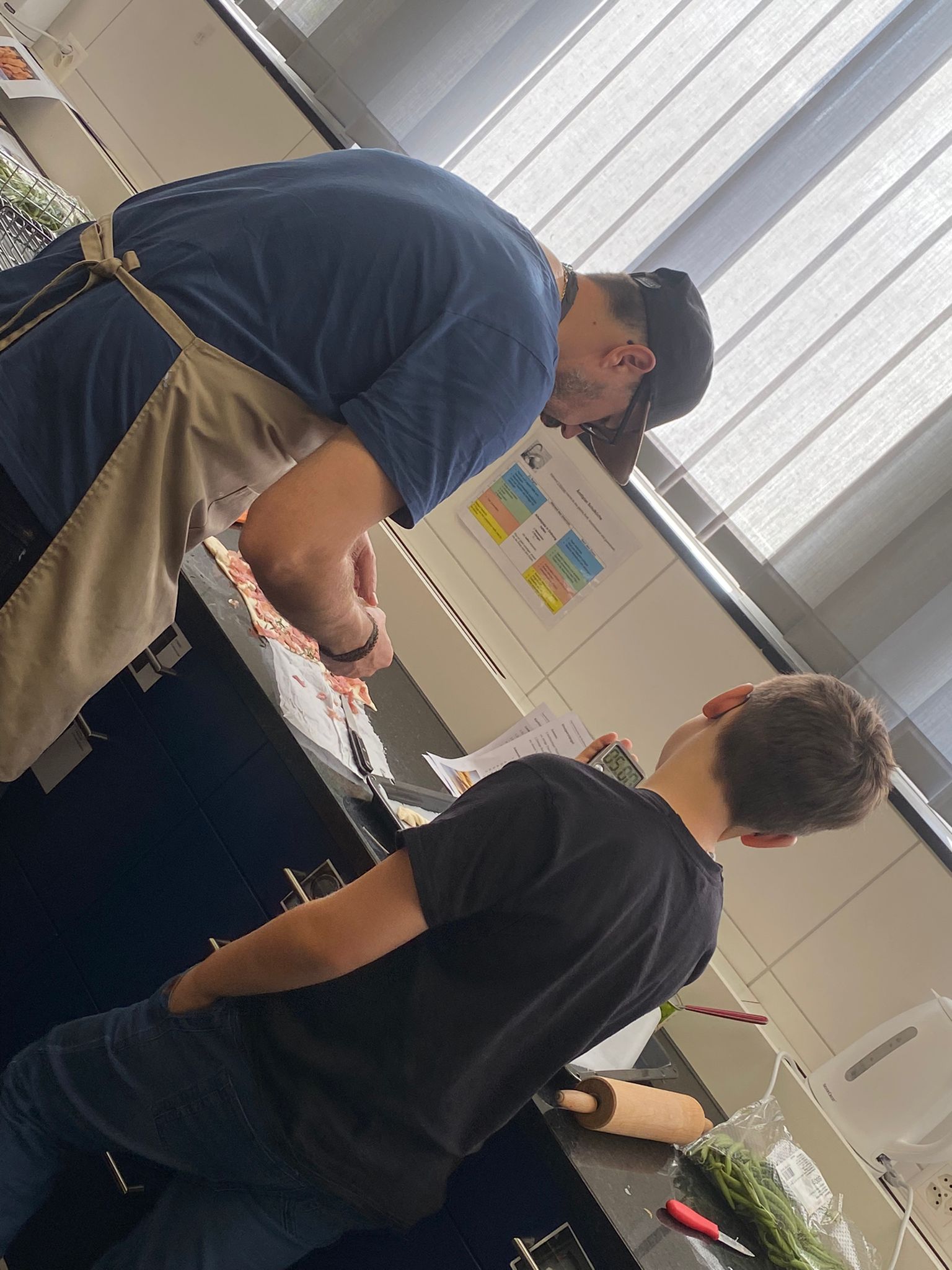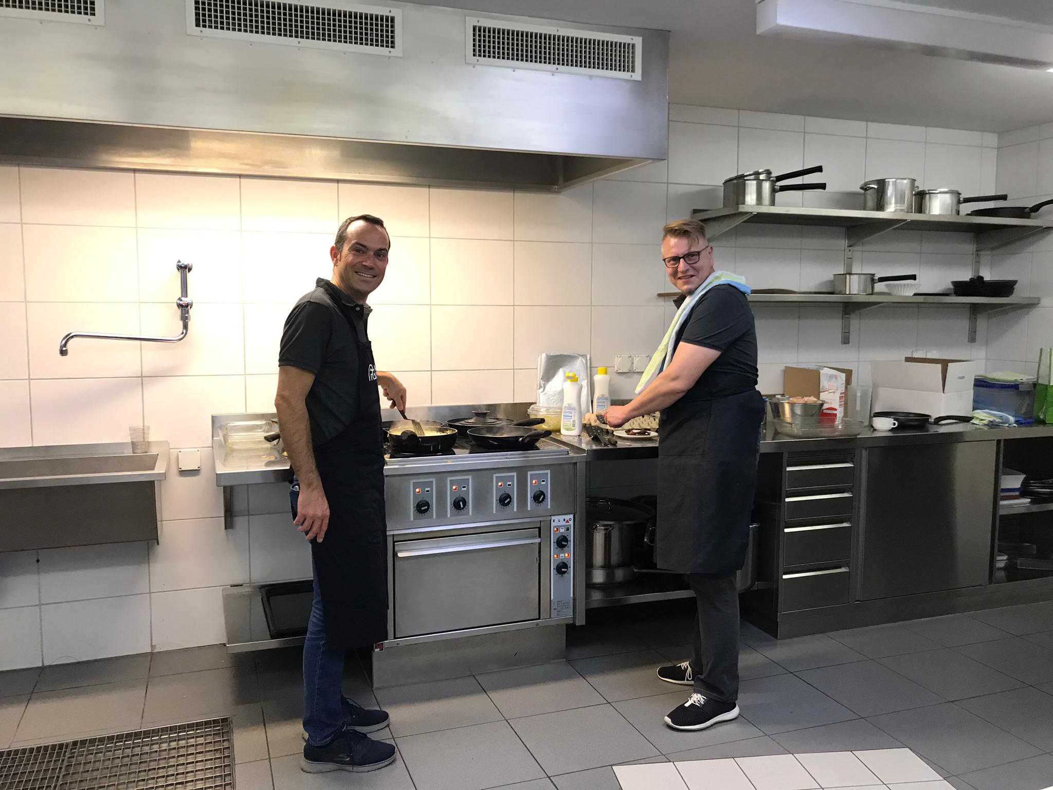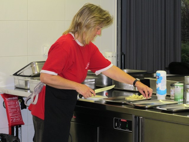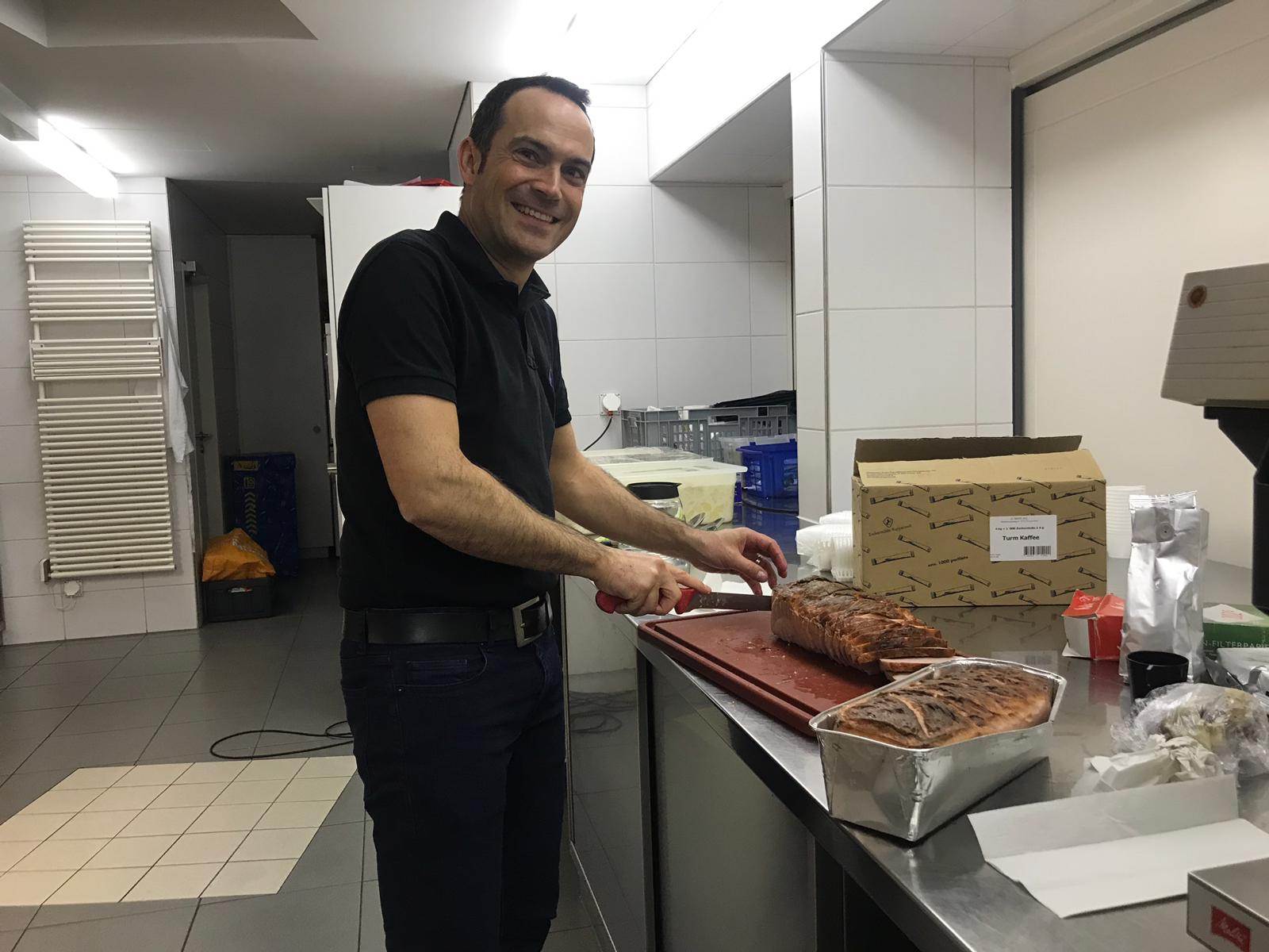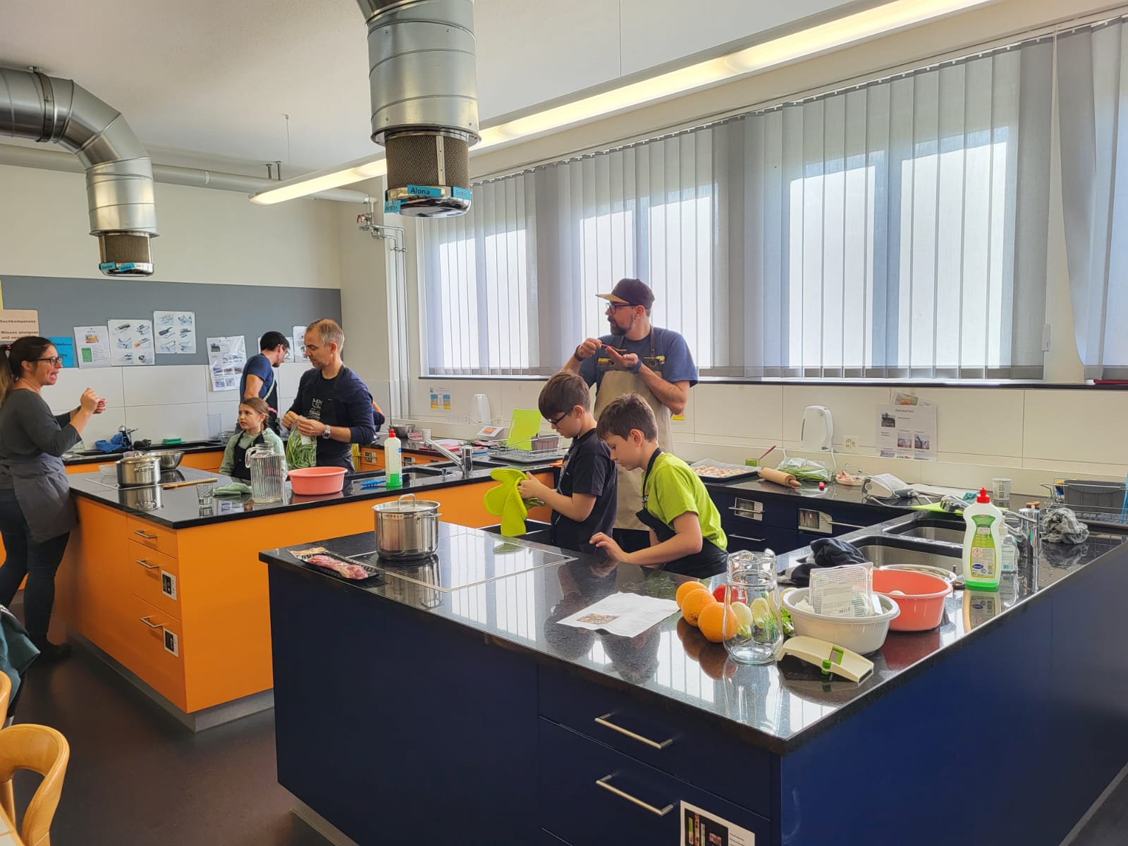 Die Hoffnungen vieler der acht teilnehmenden Väter lagen wohl nach Bekanntgabe des Menus in ihren Kindern oder Lisa, unserer Kochlehrerin… Am Samstag des Kochkurses machten sich die Kinder und Väter voller Elan daran, das 4-Gänge-Menu mit Zusatzdessert zum Mitnehmen zu kochen. Der Wille war bei allen spürbar, das eine oder andere Malheur konnte aber nicht vermieden werden. Zum Glück wurden einige Eier zu viel mitgebracht… Trotz gleichem Menubeschrieb konnte man bei einigen Gerichten geschmackliche sowie auch optische Unterschiede ausmachen. Der Freude ab der gelungenen Kürbissuppe oder dem geschmackvollen Schweinsfilet mit Bohnen im Speckmantel konnte dies aber keinen Abbruch tun. Zufrieden wurde das Erbrachte anschliessend bei einem feinen Glas Wein oder Sirup gegessen. Besten Dank an Lisa für die Geduld und fachkundige Unterstützung.