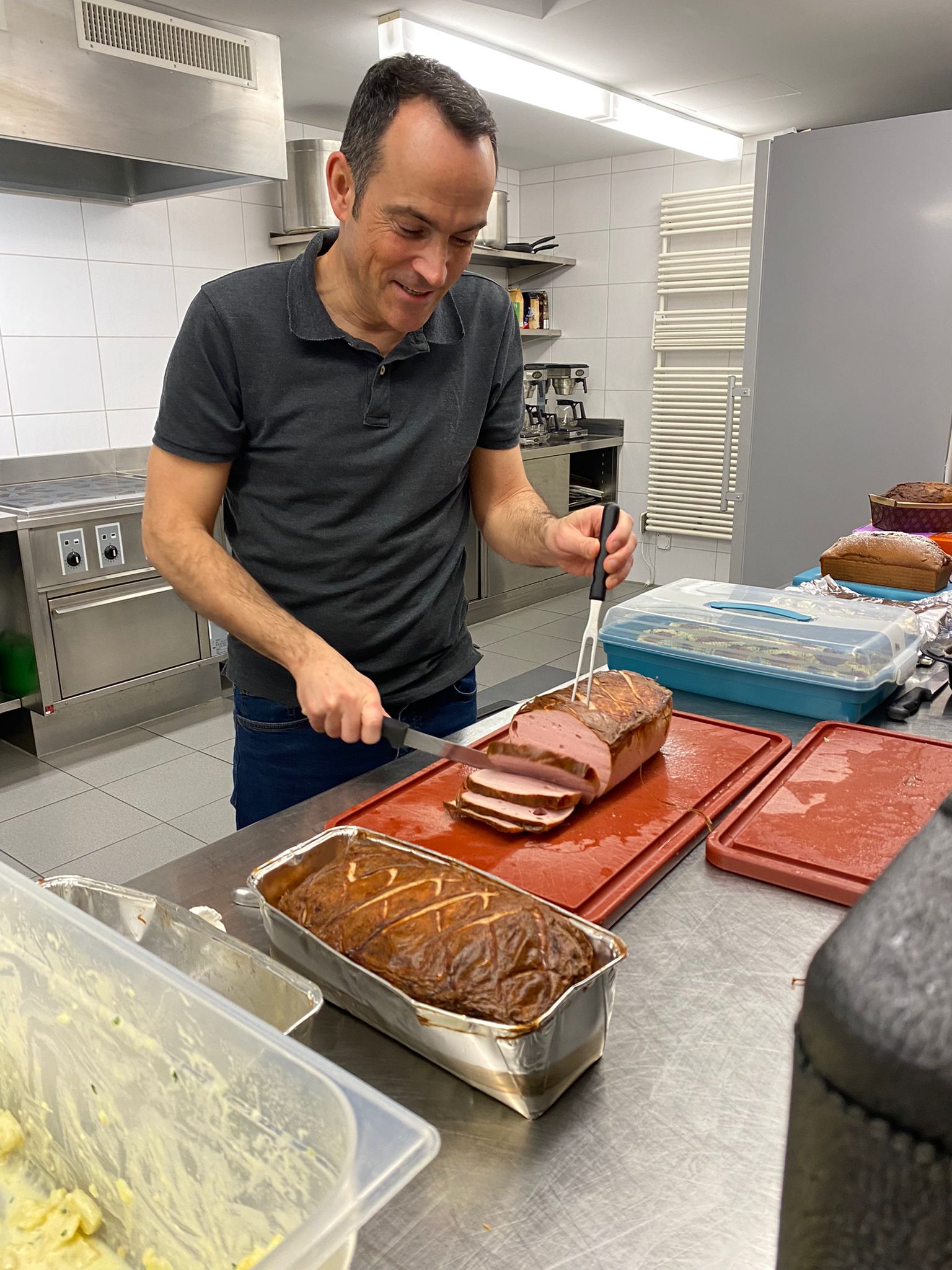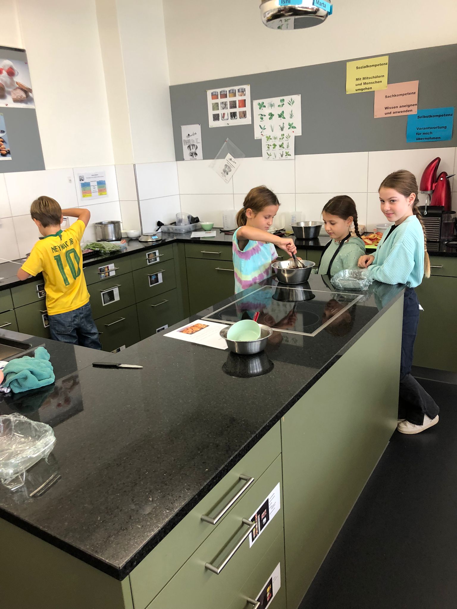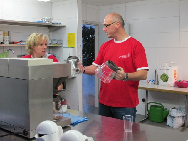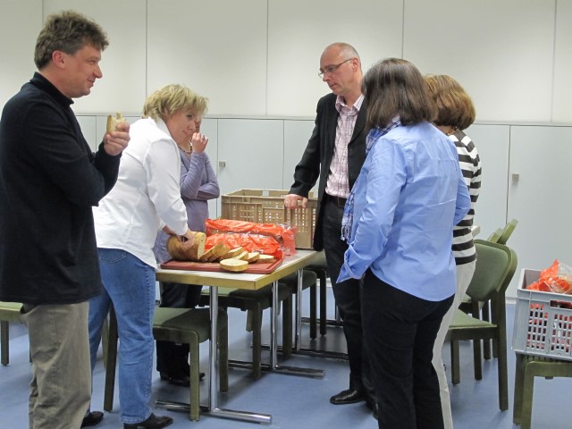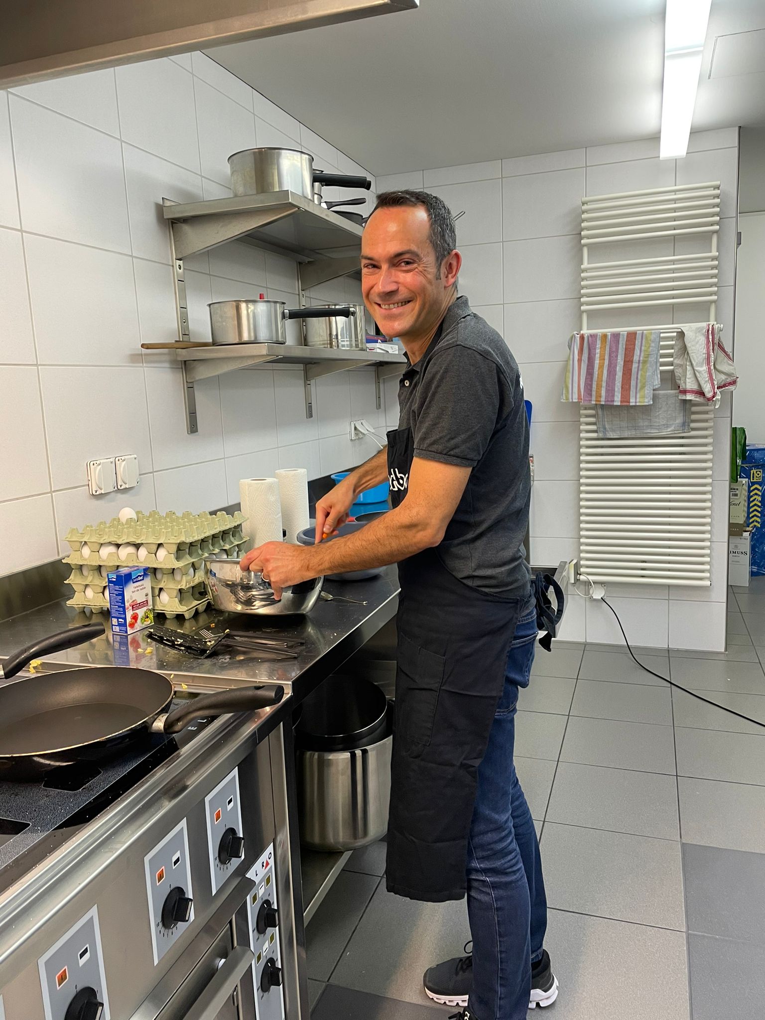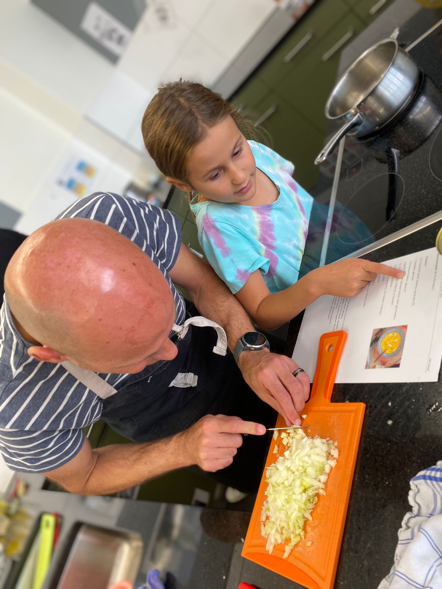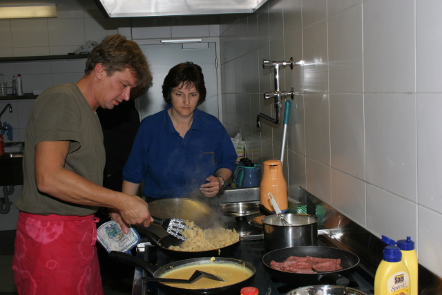 Die Hoffnungen vieler der acht teilnehmenden Väter lagen wohl nach Bekanntgabe des Menus in ihren Kindern oder Lisa, unserer Kochlehrerin… Am Samstag des Kochkurses machten sich die Kinder und Väter voller Elan daran, das 4-Gänge-Menu mit Zusatzdessert zum Mitnehmen zu kochen. Der Wille war bei allen spürbar, das eine oder andere Malheur konnte aber nicht vermieden werden. Zum Glück wurden einige Eier zu viel mitgebracht… Trotz gleichem Menubeschrieb konnte man bei einigen Gerichten geschmackliche sowie auch optische Unterschiede ausmachen. Der Freude ab der gelungenen Kürbissuppe oder dem geschmackvollen Schweinsfilet mit Bohnen im Speckmantel konnte dies aber keinen Abbruch tun. Zufrieden wurde das Erbrachte anschliessend bei einem feinen Glas Wein oder Sirup gegessen. Besten Dank an Lisa für die Geduld und fachkundige Unterstützung.