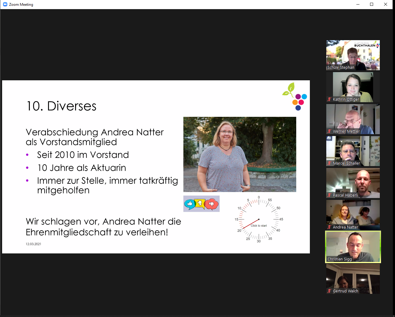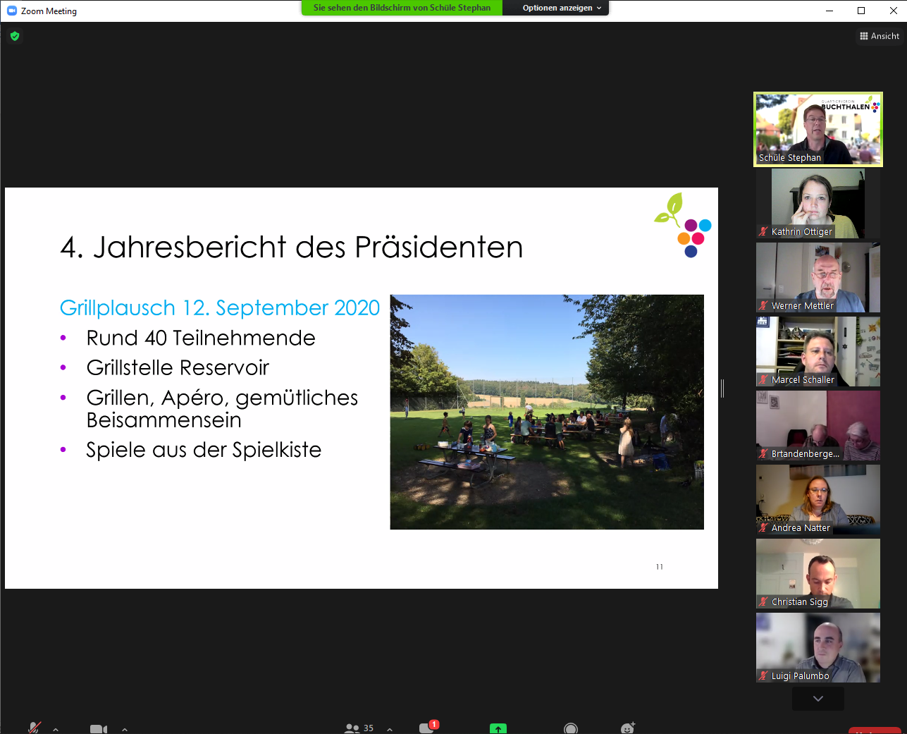 Auch wenn bei der Online-GV alles bestens geklappt hat, hoffen wir alle sehr, dass die 75. Generalversammlung im nächsten Frühling wieder im gewohnten Rahmen im HofAckerZentrum stattfinden kann.