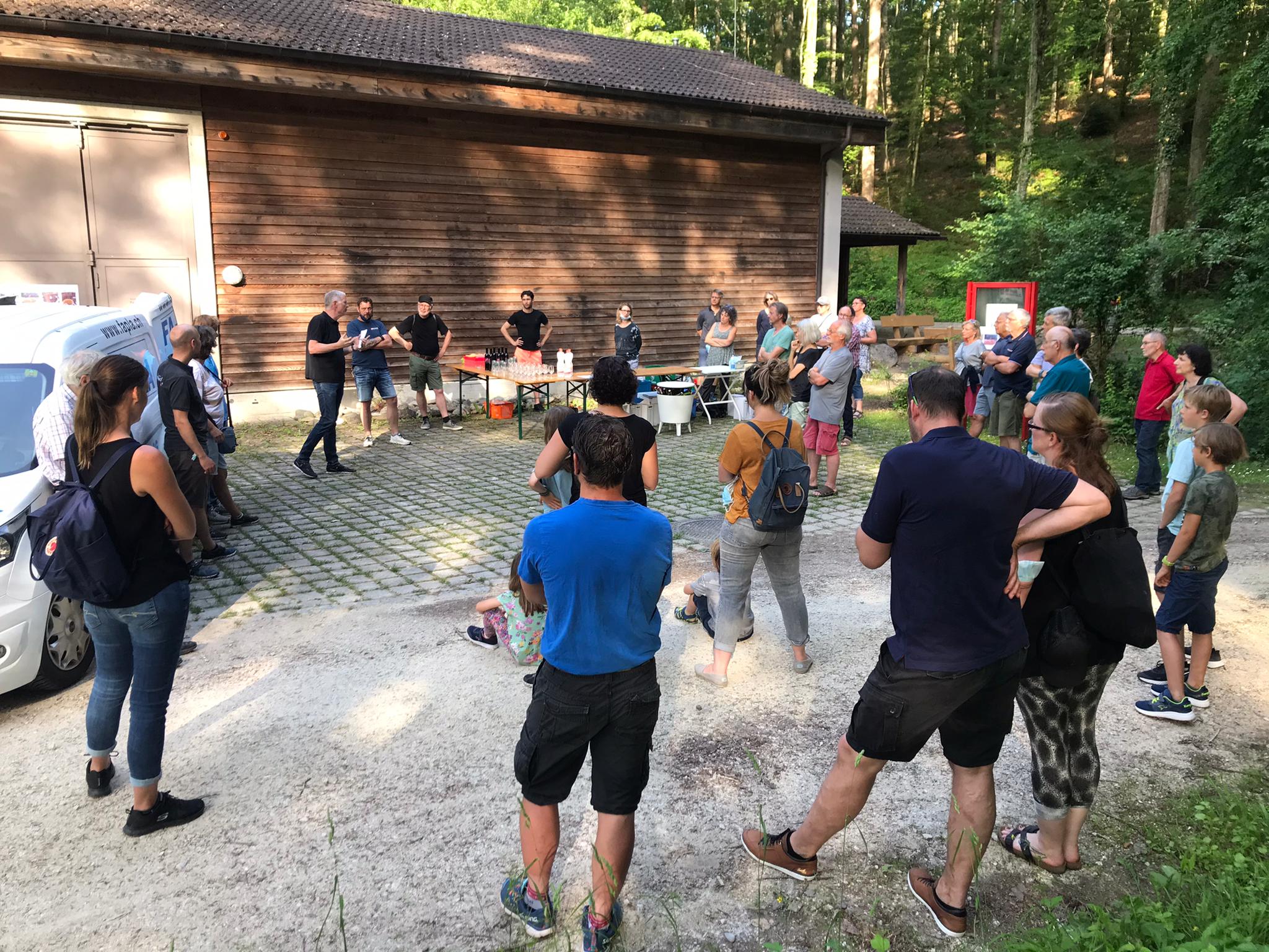 Anschliessend führte René Schmid, Chefmonteur und in Ausbildung zum Brunnenmeister, die Besucherinnen und Besucher in den 42 Meter tiefen Pumpenschacht. Während das Hinuntersteigen in die Kühle allen Freude bereitete, hatten doch einige mit dem Hinaufsteigen der 165 Treppenstufen etwas mehr Mühe. Nach diesem Kraftakt wartete dann aber das toll angerichtete Apérobuffet, organisiert durch Heike vom Restaurant Frohsinn. Es folgte ein reger Austausch zwischen den Anwesenden. Und sollten noch Fragen zum Bau aufgetaucht worden sein, konnte Franz Winzeler, welcher massgebend am Bau beteiligt war und nun seinen Ruhestand geniesst, Auskunft über alle Fakten geben. Und so neigte sich ein schöner Anlass im Buchthalerwald gegen Abend dem Ende zu. Wir freuen uns bereits auf den nächsten Anlass.