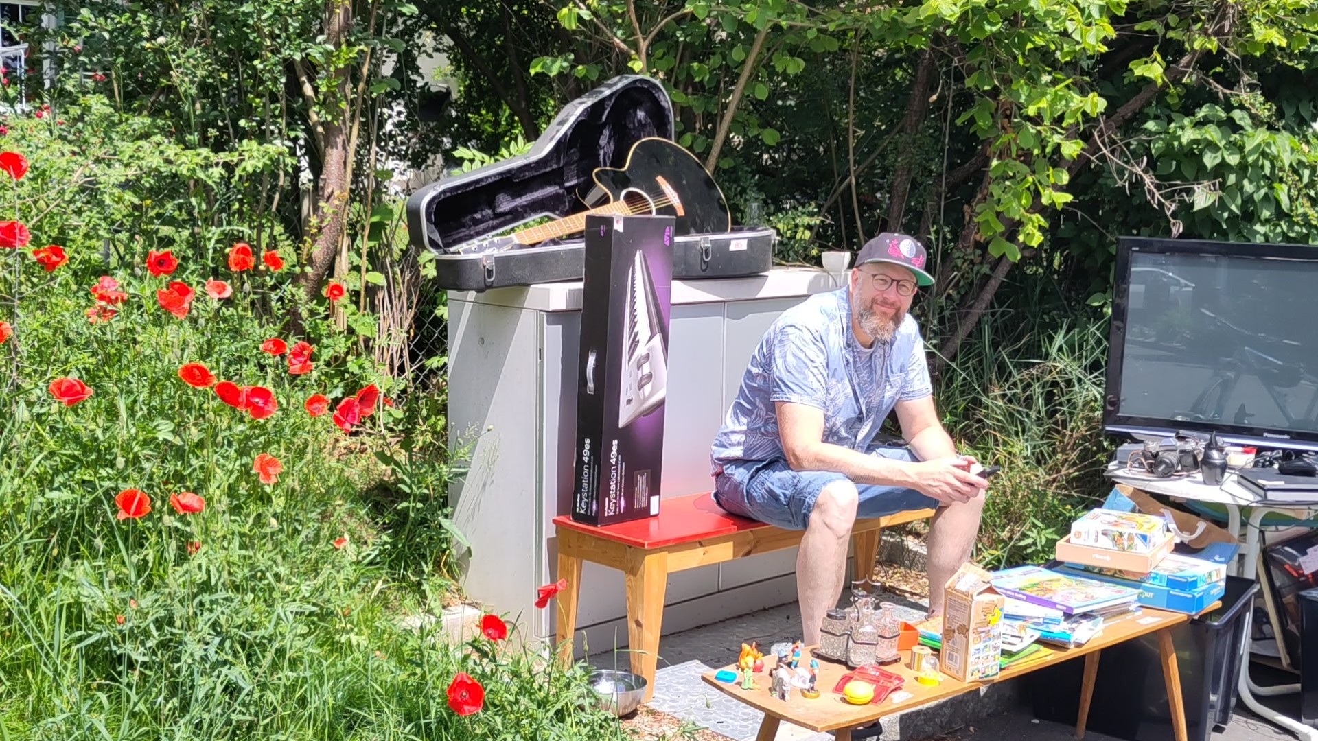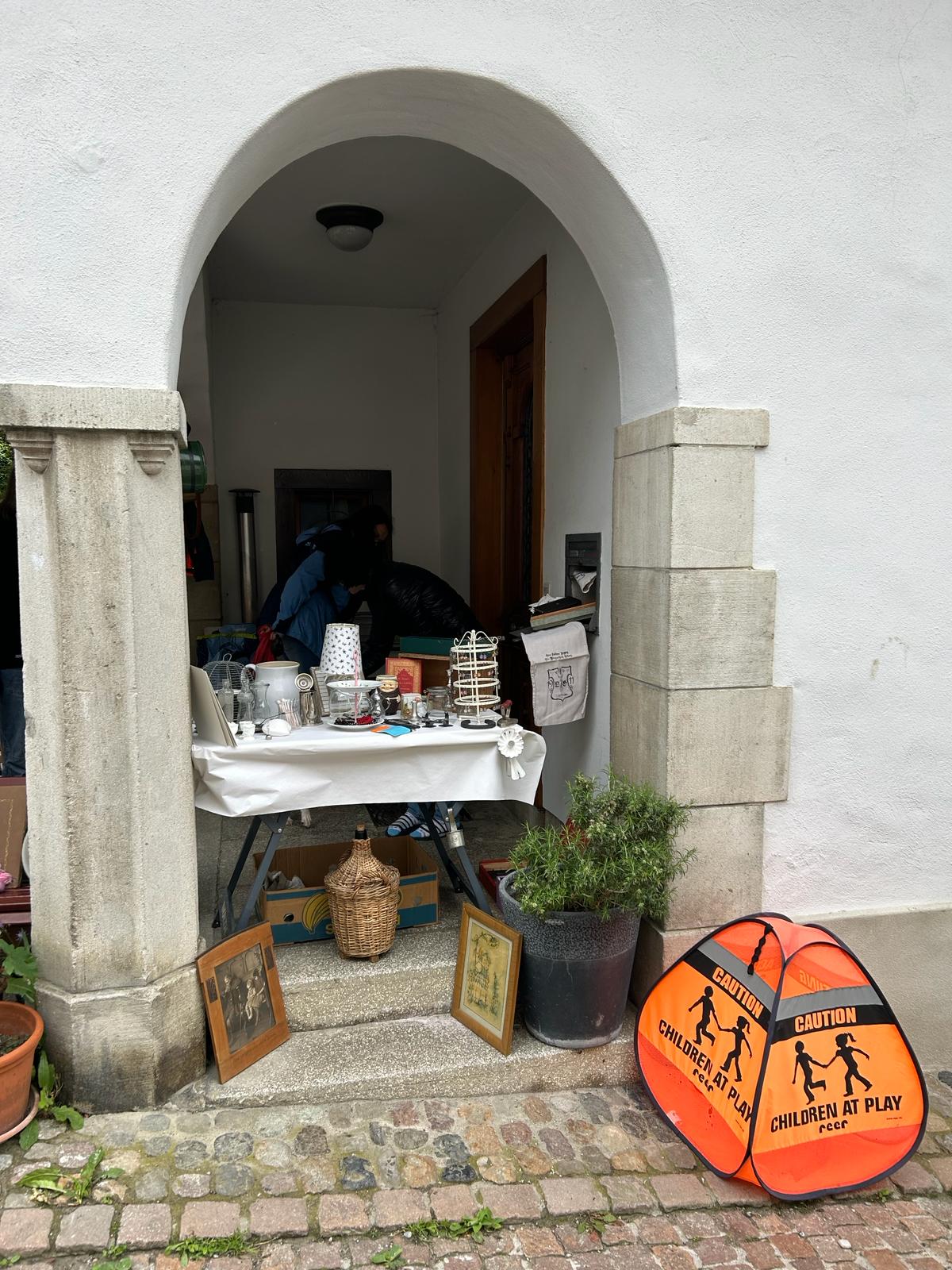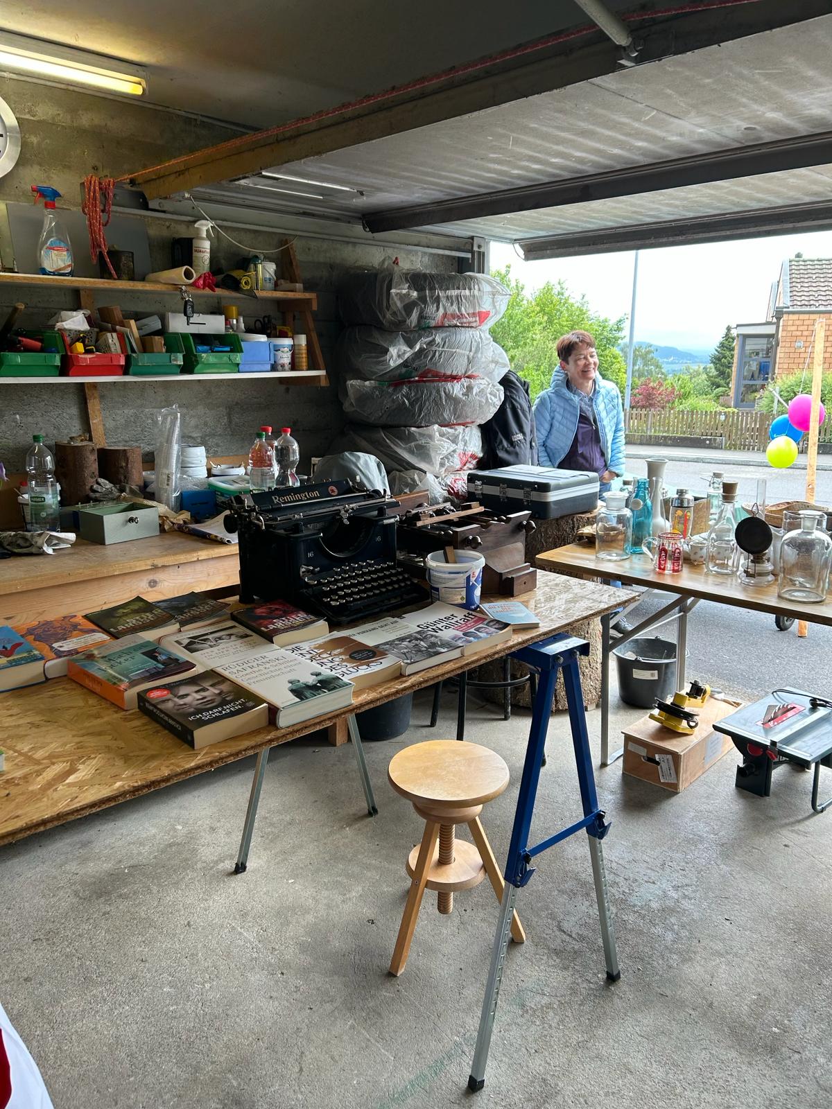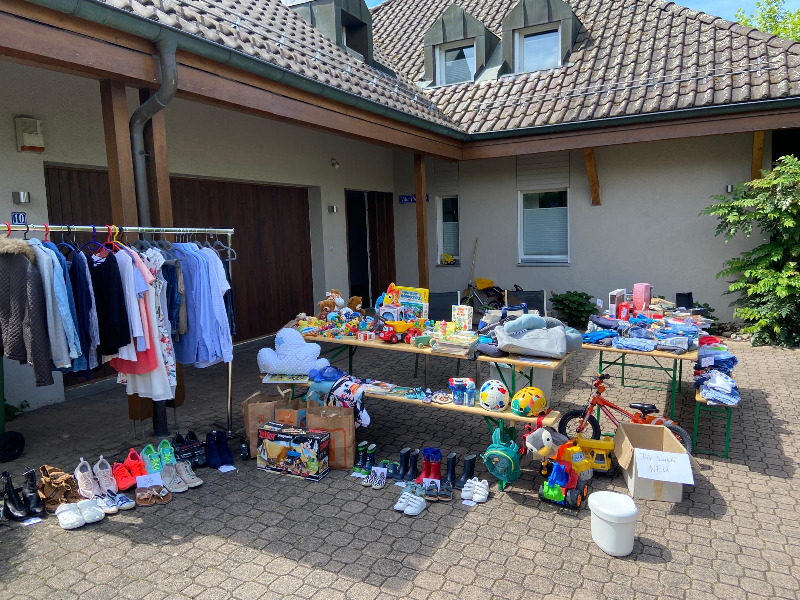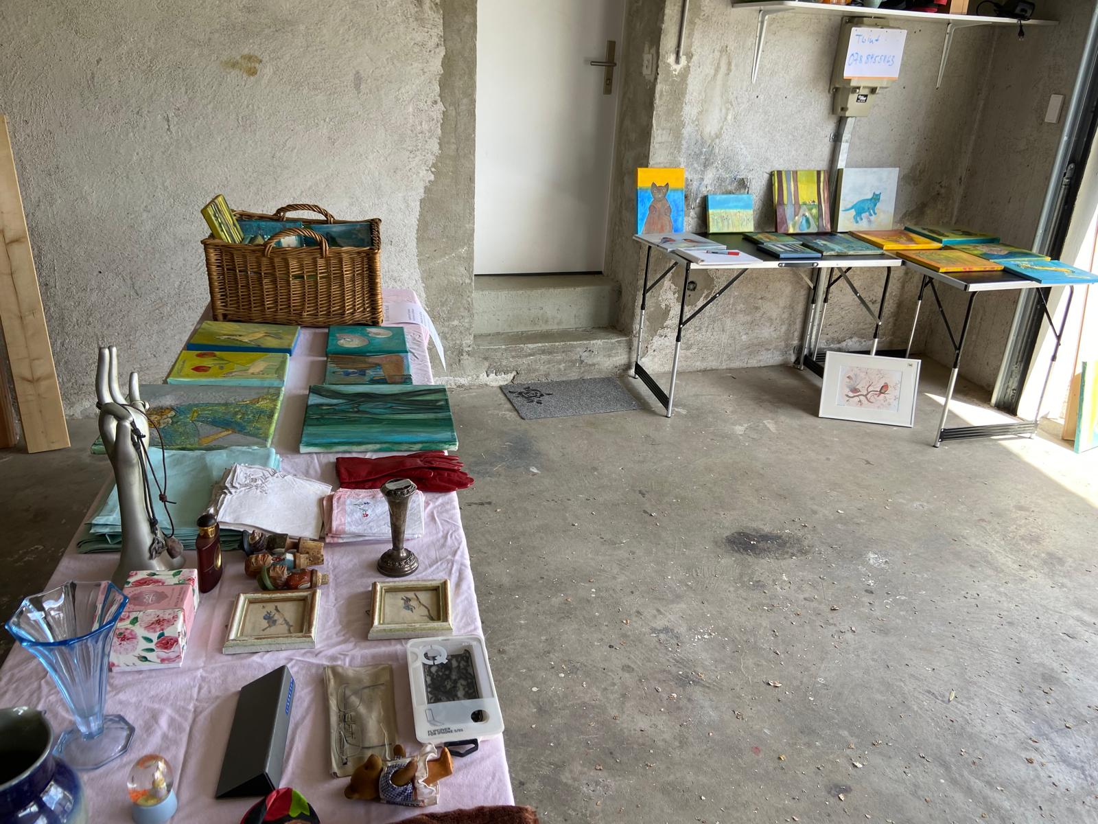 Die oft sehr kreativ präsentierte Ware konnte von den Besucherinnen und Besuchern in Garagen, auf Vorplätzen und in Gärten bestaunt werden. Es gab ein auffallend grosses Angebot an Kinderspielzeugen und Kinderkleidern sowie an Büchern. Ausserdem gab es Musiknoten, Fotoapparate, Waschbecken, Krüge, Vasen, Deco und vieles mehr.