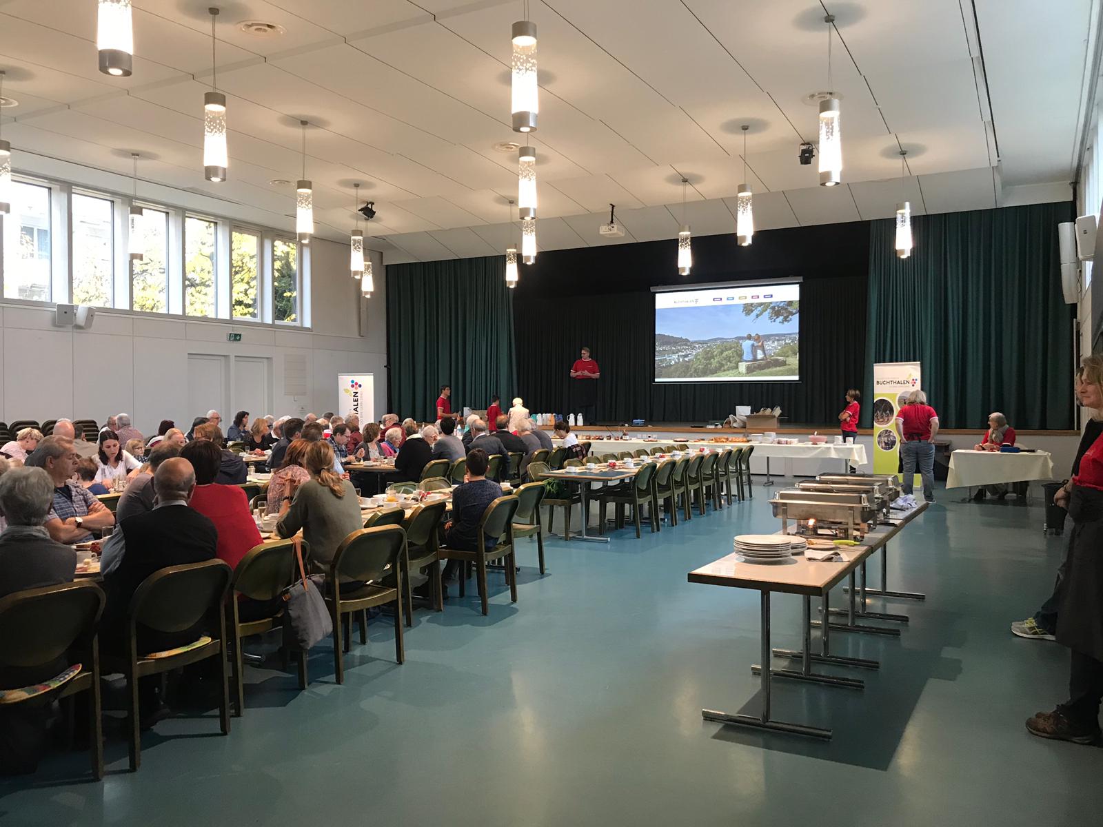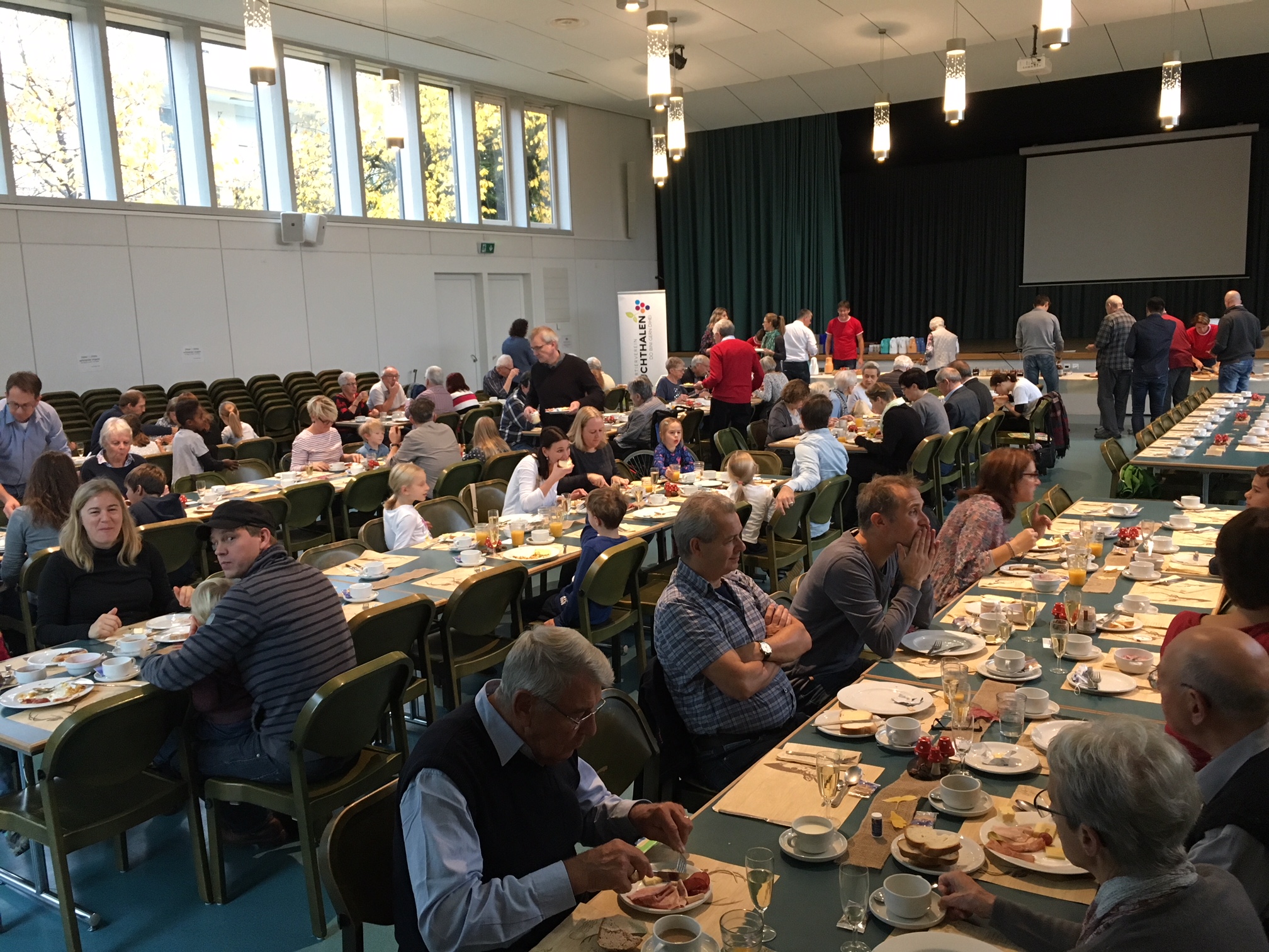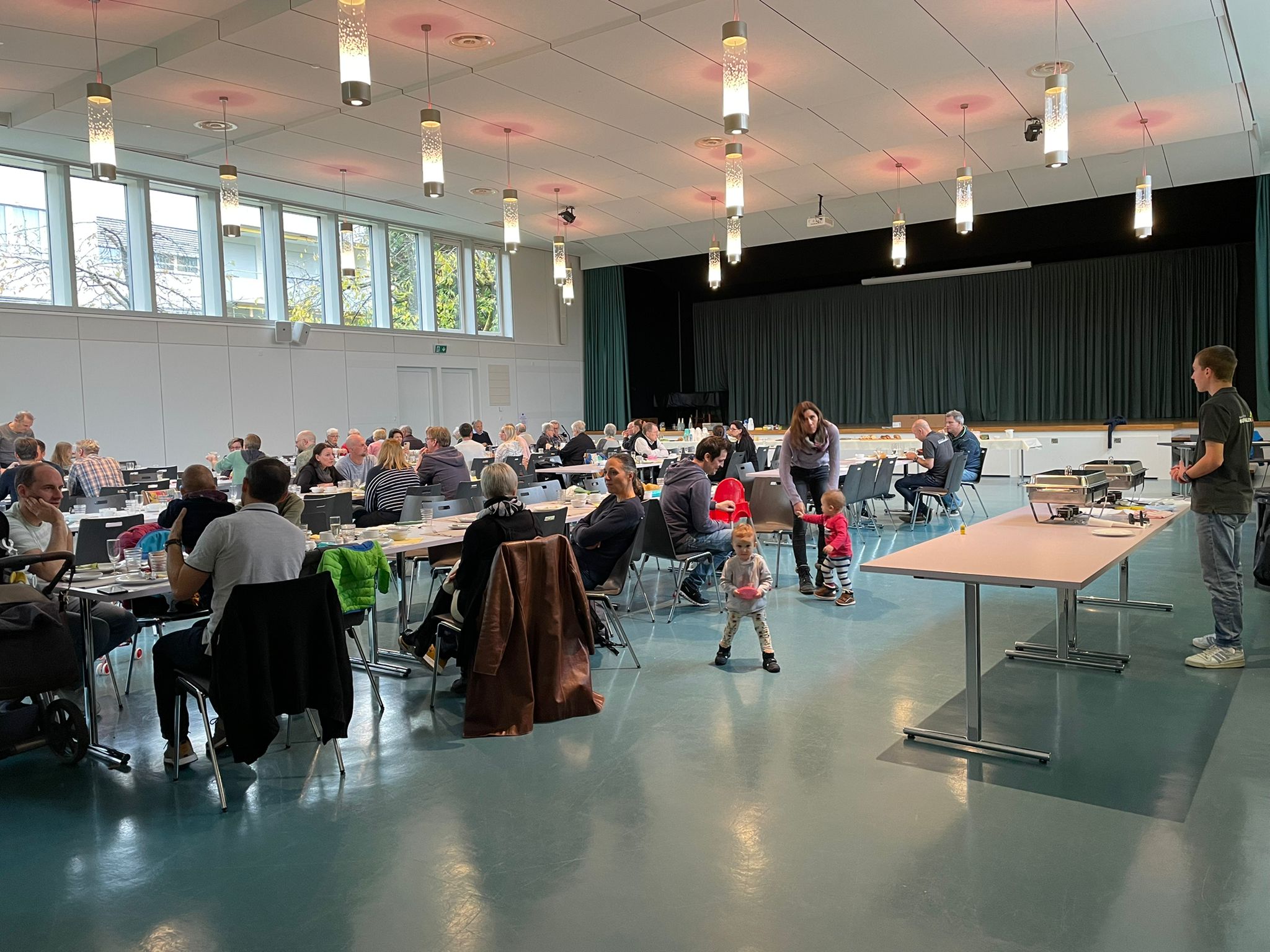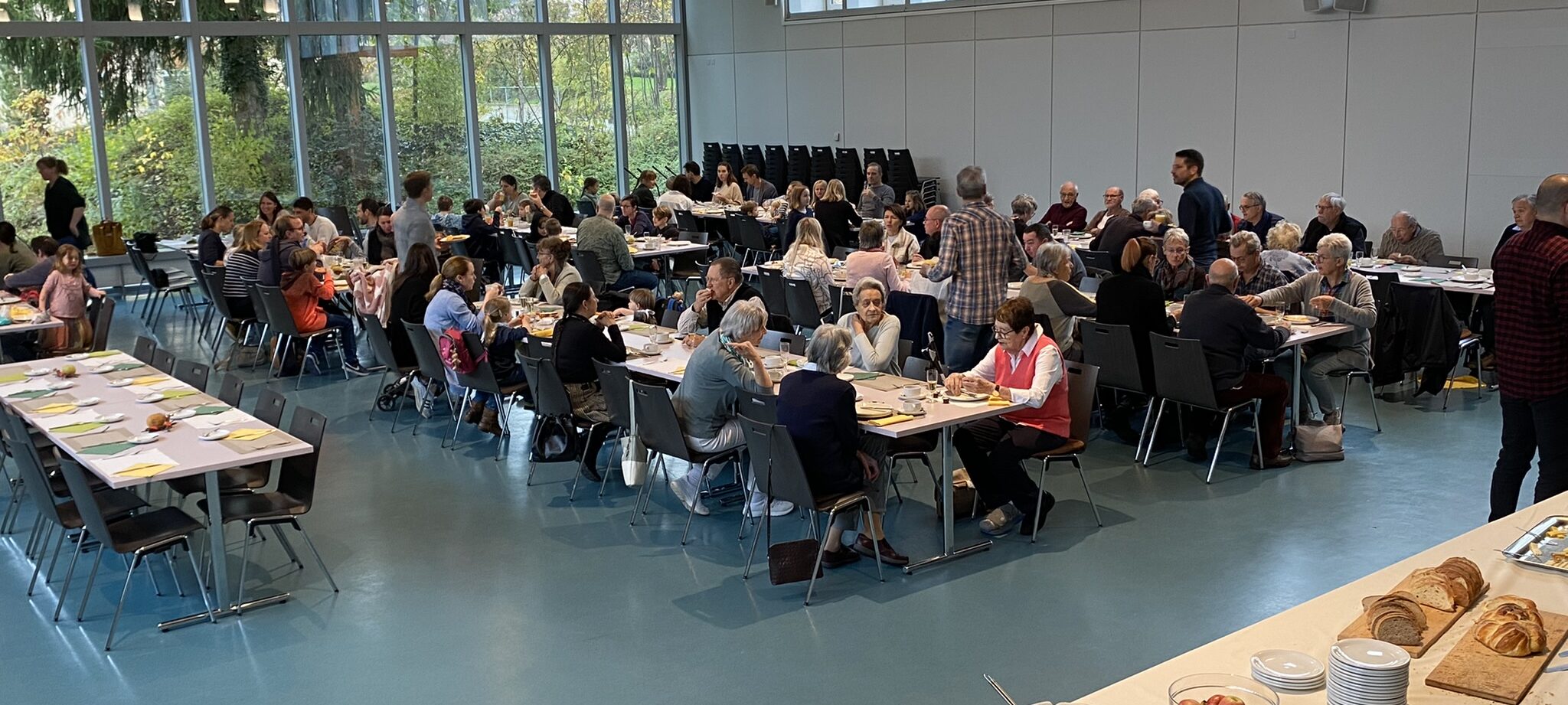 Rund 125 Personen von Jung bis Alt genossen am Sonntag, 13. November, das reichhaltige Buffet des Buurezmorge im HofAckerZentrum: frisches Brot, Wurst und Käse, Spiegelei, Speck und Rösti – dazu nette Gespräche und für die Kleinsten eine Kinderhüetti mit Basteln und Spiel. Der Buurezmorge ist nicht umsonst unser beliebtester Anlass und sorgt jedes Jahr für zufriedene Gesichter – und Mägen.