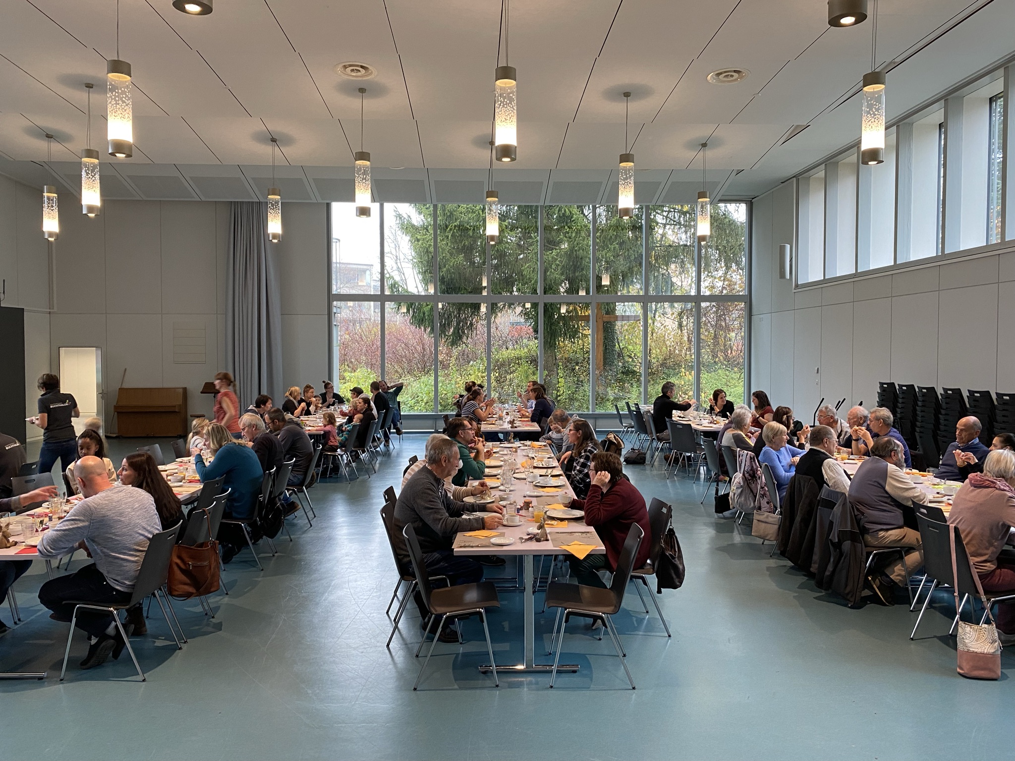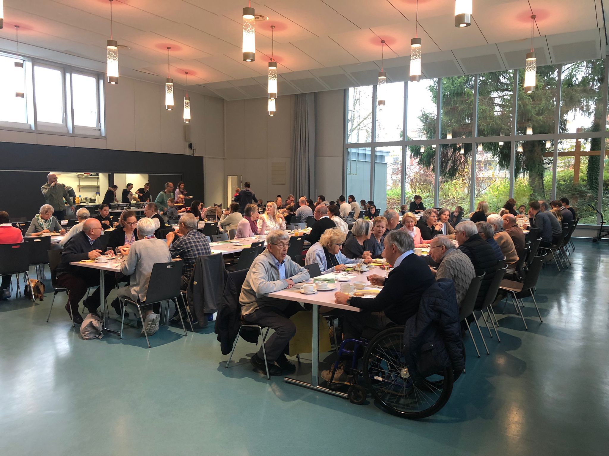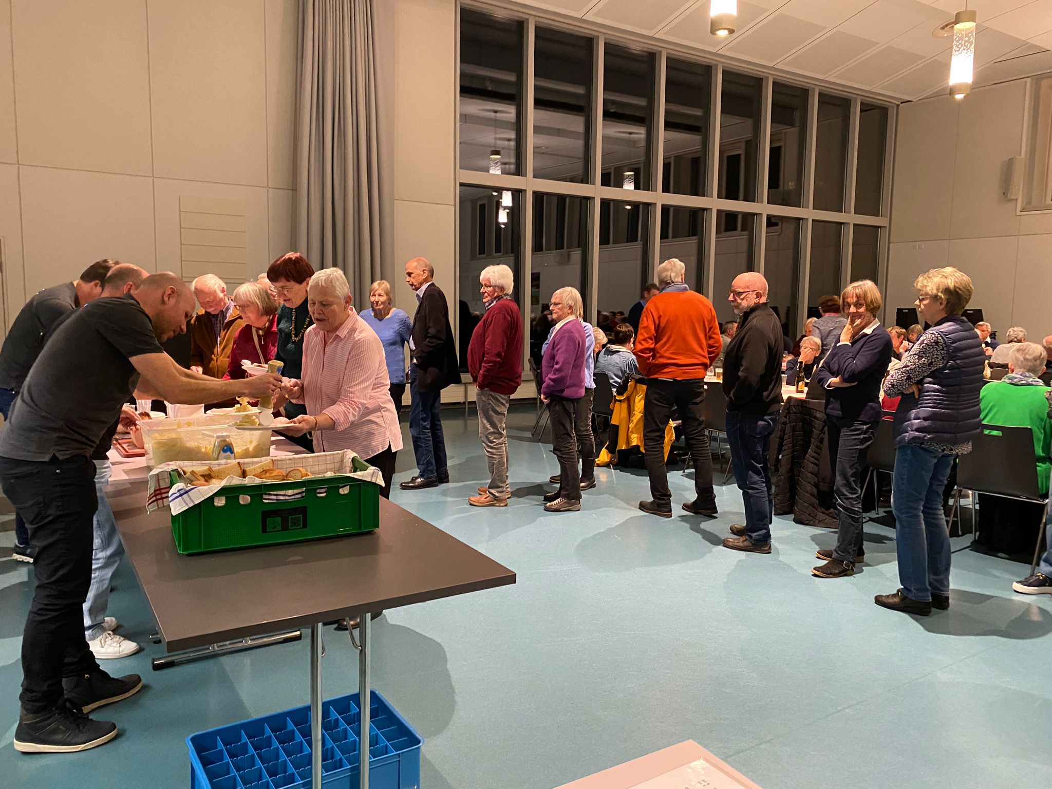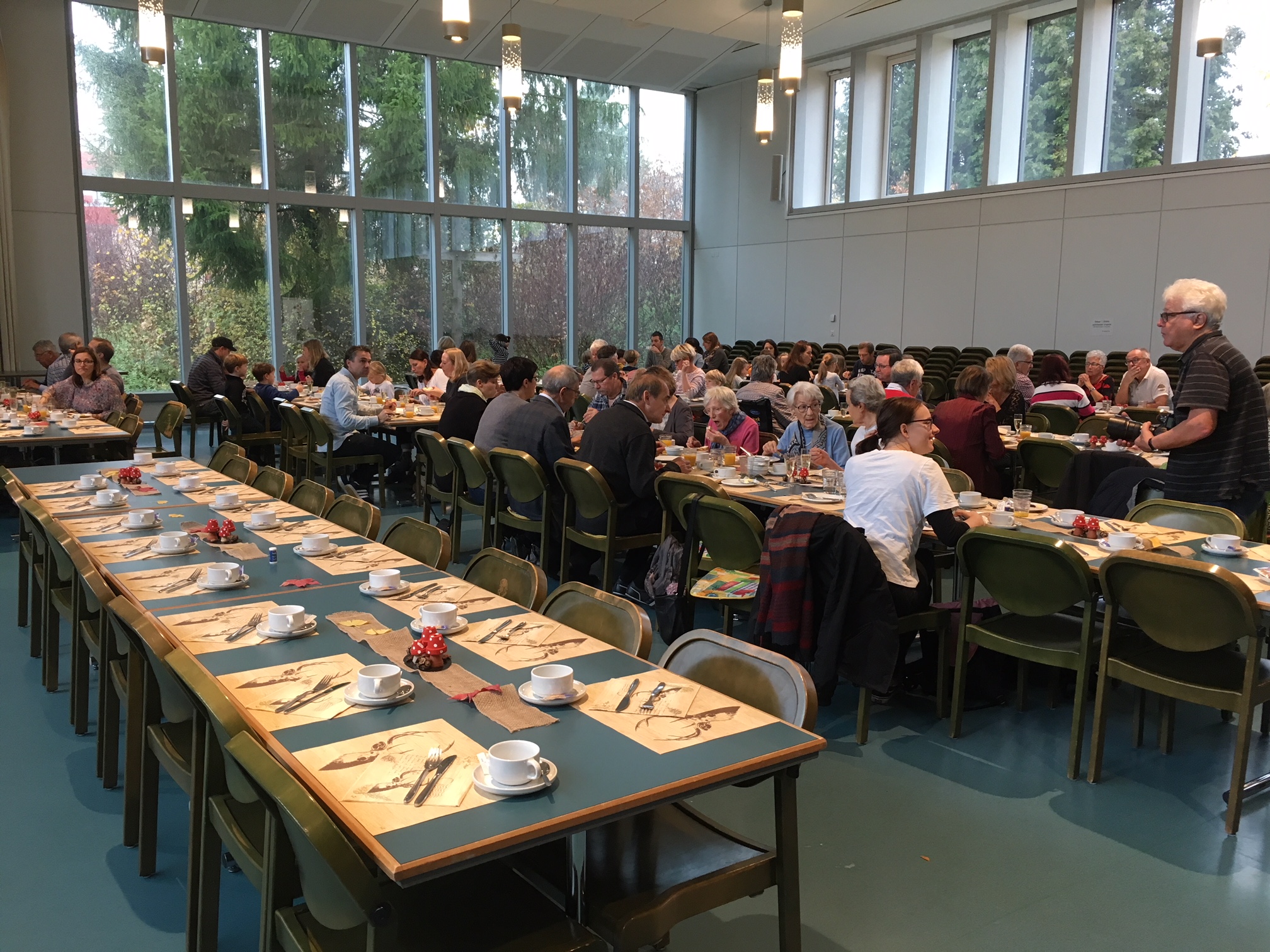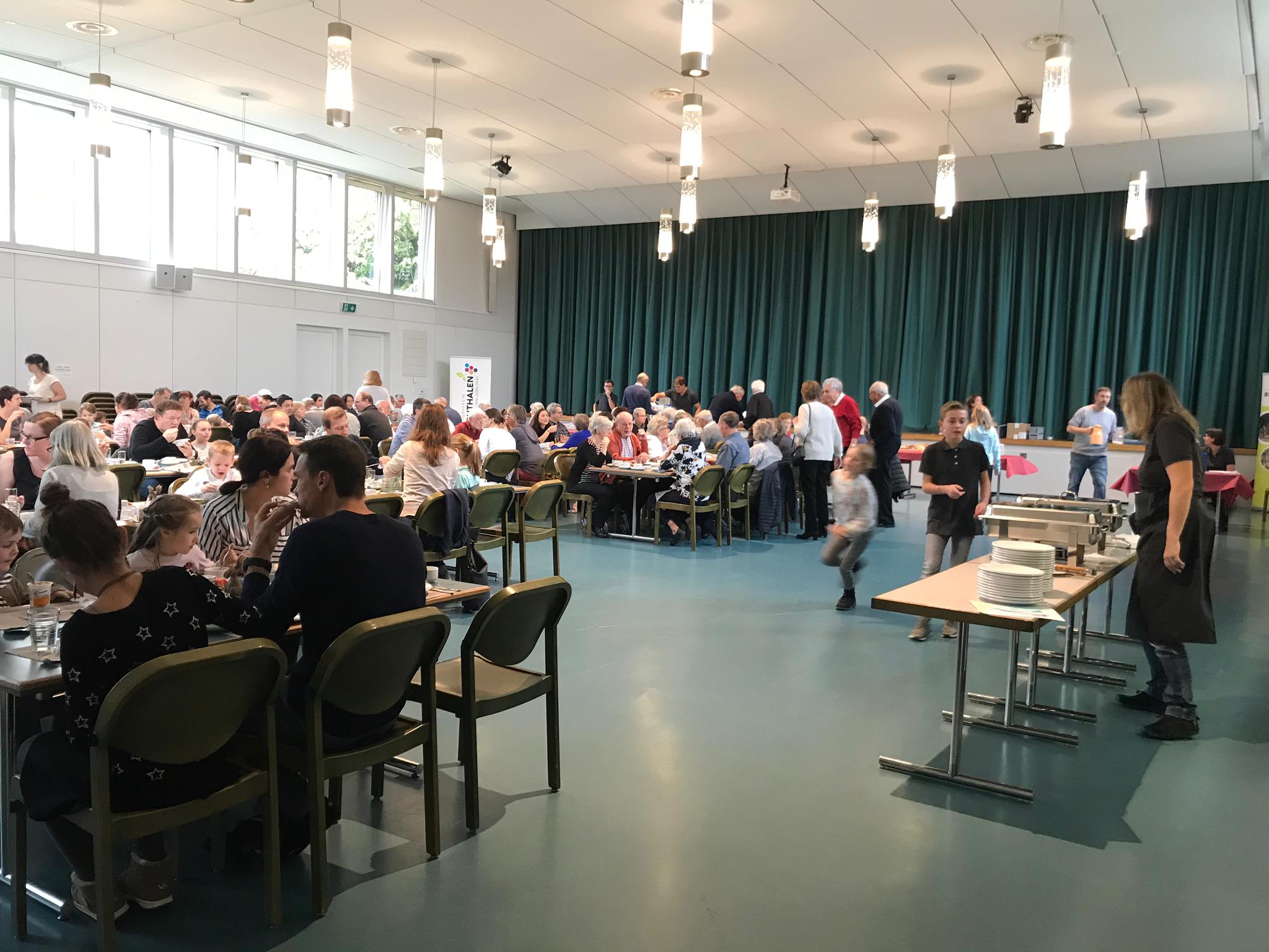Rund 125 Personen von Jung bis Alt genossen am Sonntag, 13. November, das reichhaltige Buffet des Buurezmorge im HofAckerZentrum: frisches Brot, Wurst und Käse, Spiegelei, Speck und Rösti – dazu nette Gespräche und für die Kleinsten eine Kinderhüetti mit Basteln und Spiel. Der Buurezmorge ist nicht umsonst unser beliebtester Anlass und sorgt jedes Jahr für zufriedene Gesichter – und Mägen.
