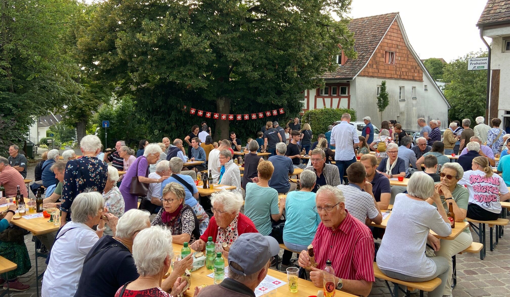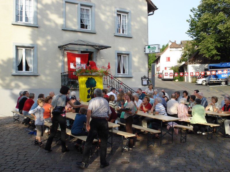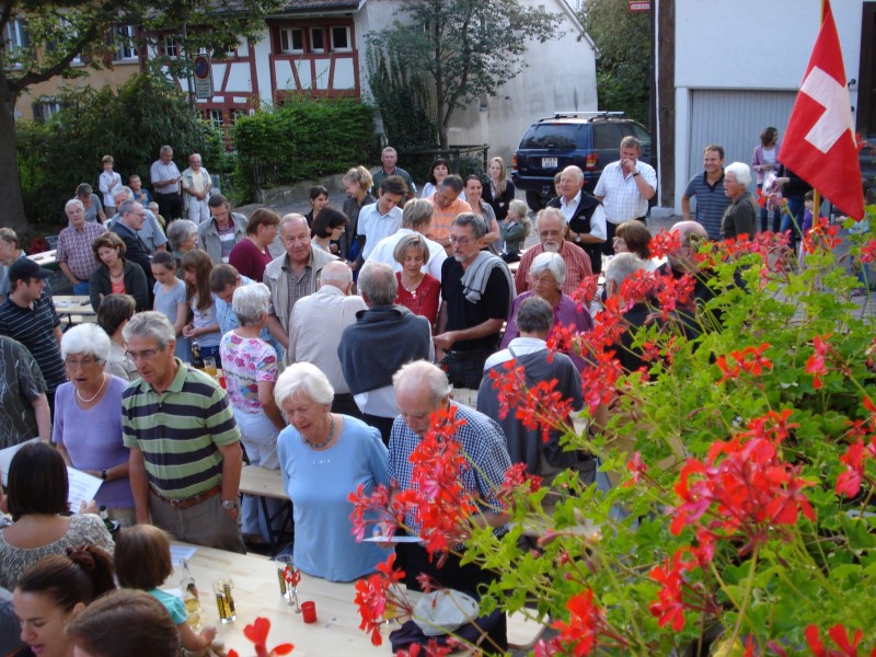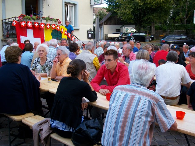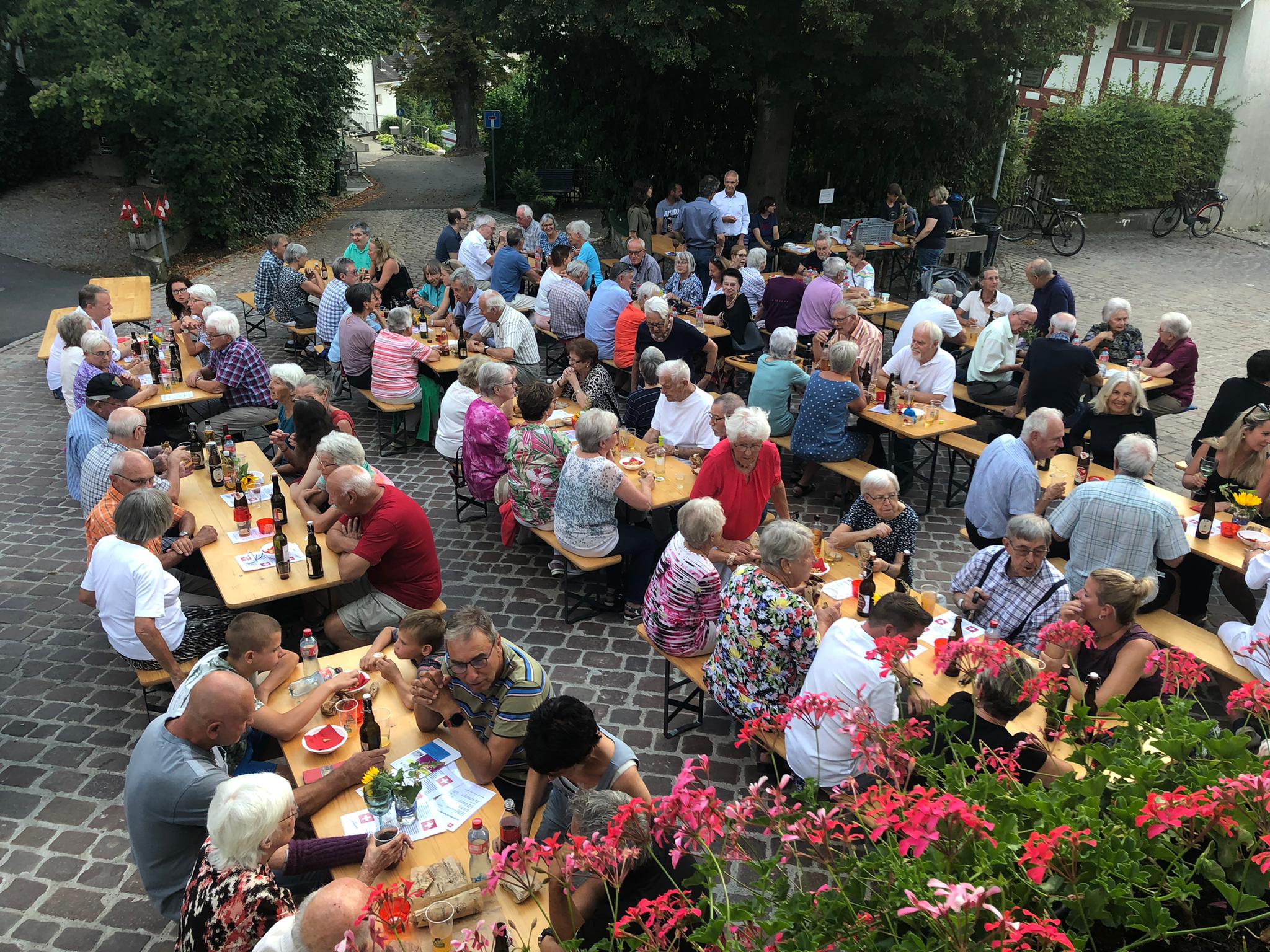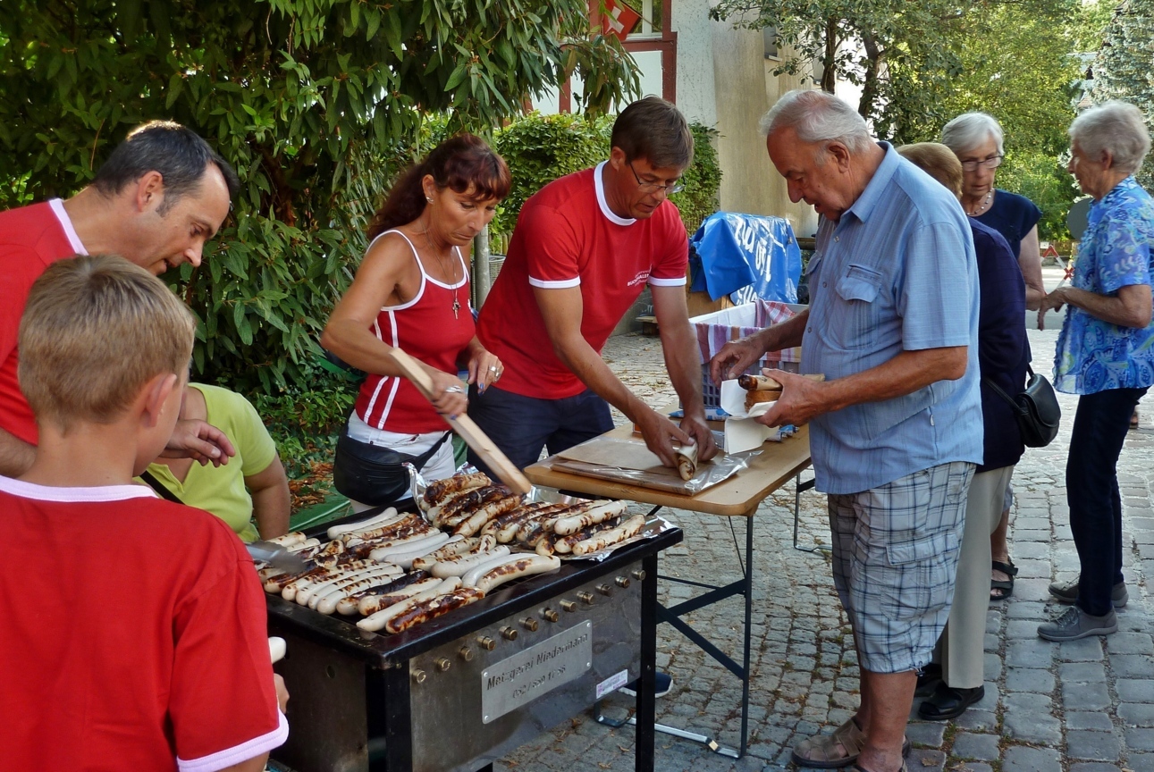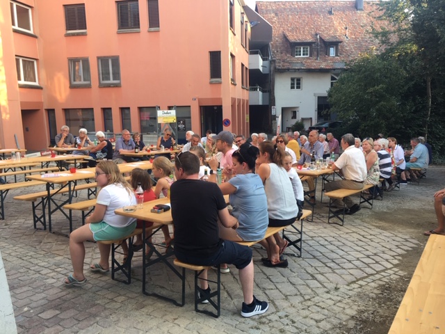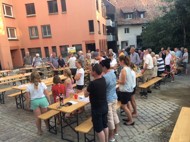 Nach dem Singen des Schweizerpsalms offerierte der Quartierverein eine Bratwurst und das Team um Heike Möckli vom Restaurant Frohsinn bewirtete die Gäste wie gewohnt mit viel Aufmerksamkeit. Kein Wunder wurde fleissig weiter diskutiert und sich ausgetauscht.