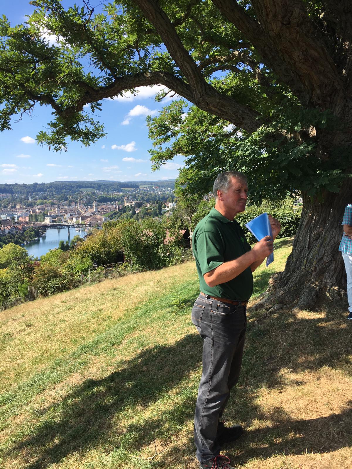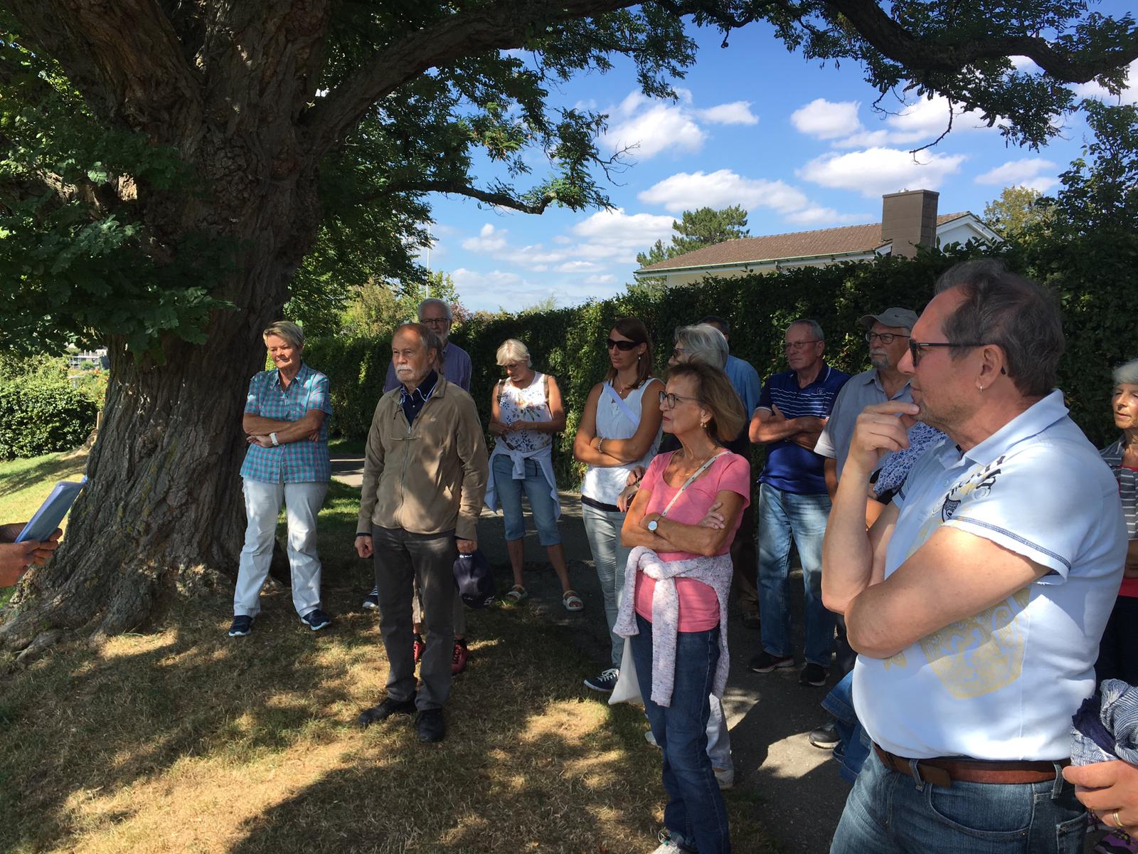 107 Jahre alt. So alt ist der Waldfriedhof Schaffhausen, eingebettet in den Rheinhardswald am Stadtrand von Schaffhausen und nur einen Katzensprung über das Grubental, von Buchthalen entfernt. Sieben Zuhörerinnen und Zuhörer lauschten gespannt den Worten von Hans Schneckenburger von der Abteilung Friedhöfe. Es gab allerlei über den Friedhof selbst zu erfahren, aber vor allem auch über dessen Vegetation. Der in der Schweiz einzigartige Friedhof bietet nicht nur Gräber, sondern auch viel Geschichte und noch mehr Natur. Und wer am Schluss den richtigen Weg aus dem Labyrinth aus Wegen und Pfaden gewählt hat, durfte sich noch ab dem feinen Apéro von Heike vom Restaurant Frohsinn erfreuen.