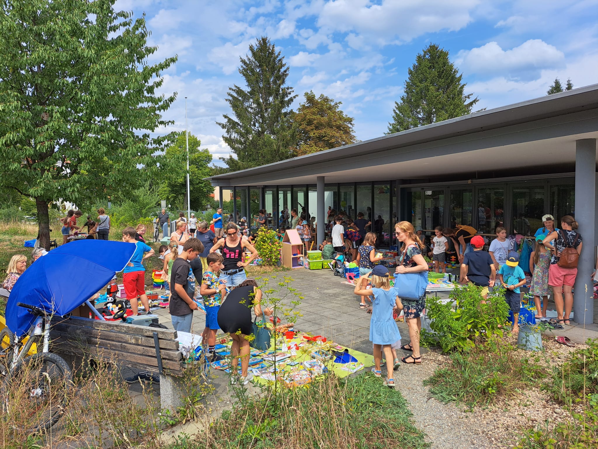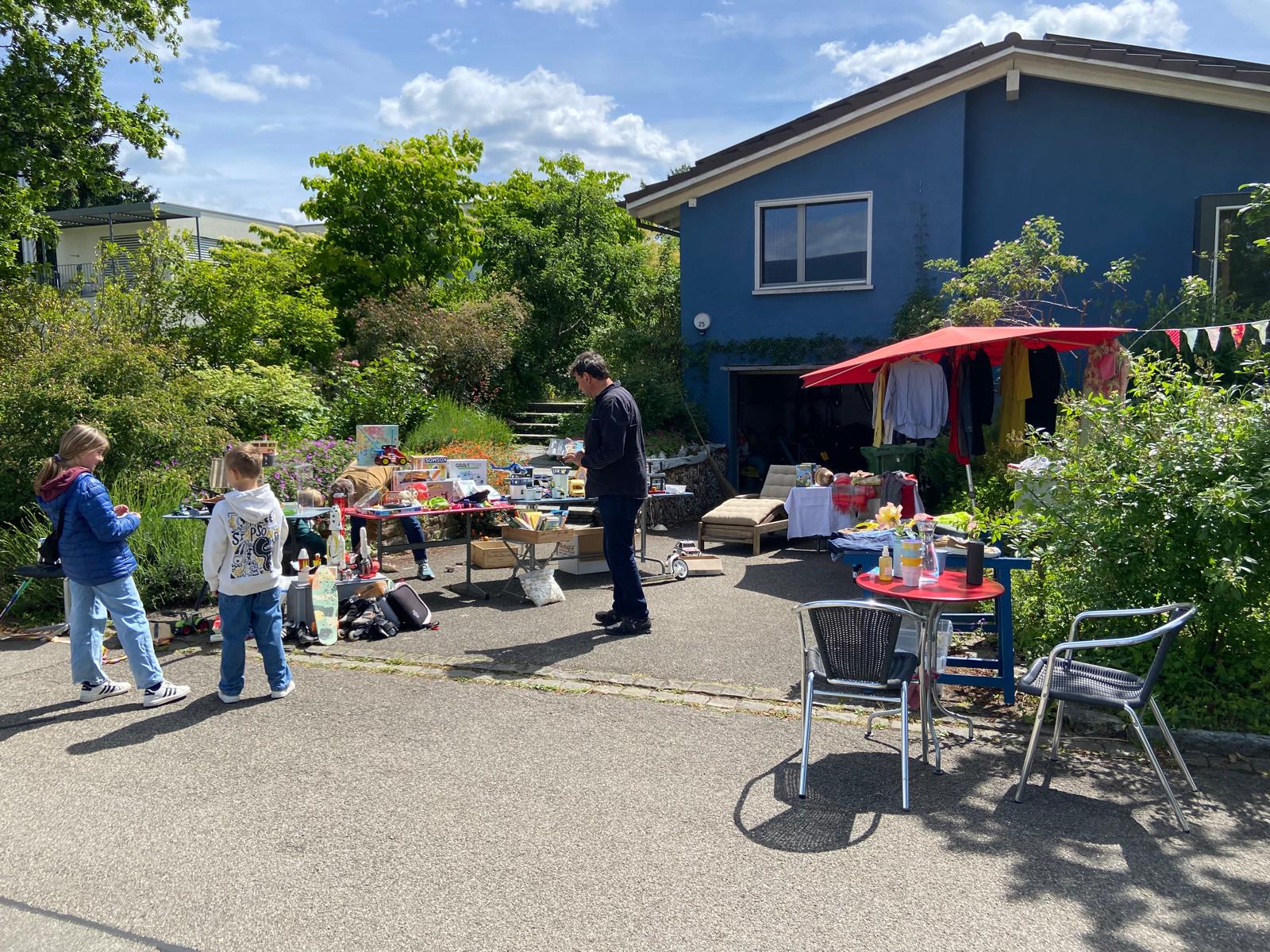 Über vierzig Stände waren im ganzen Quartier verteilt. Bis am Vorabend des Flohmarkts waren noch Anmeldungen eingetrudelt. Der Quartierflohmarkt war ein unerwartet grosser Erfolg, der auf grosses Interesse stiess – von Standbetreibenden sowie Besucherinnen und Besuchern.