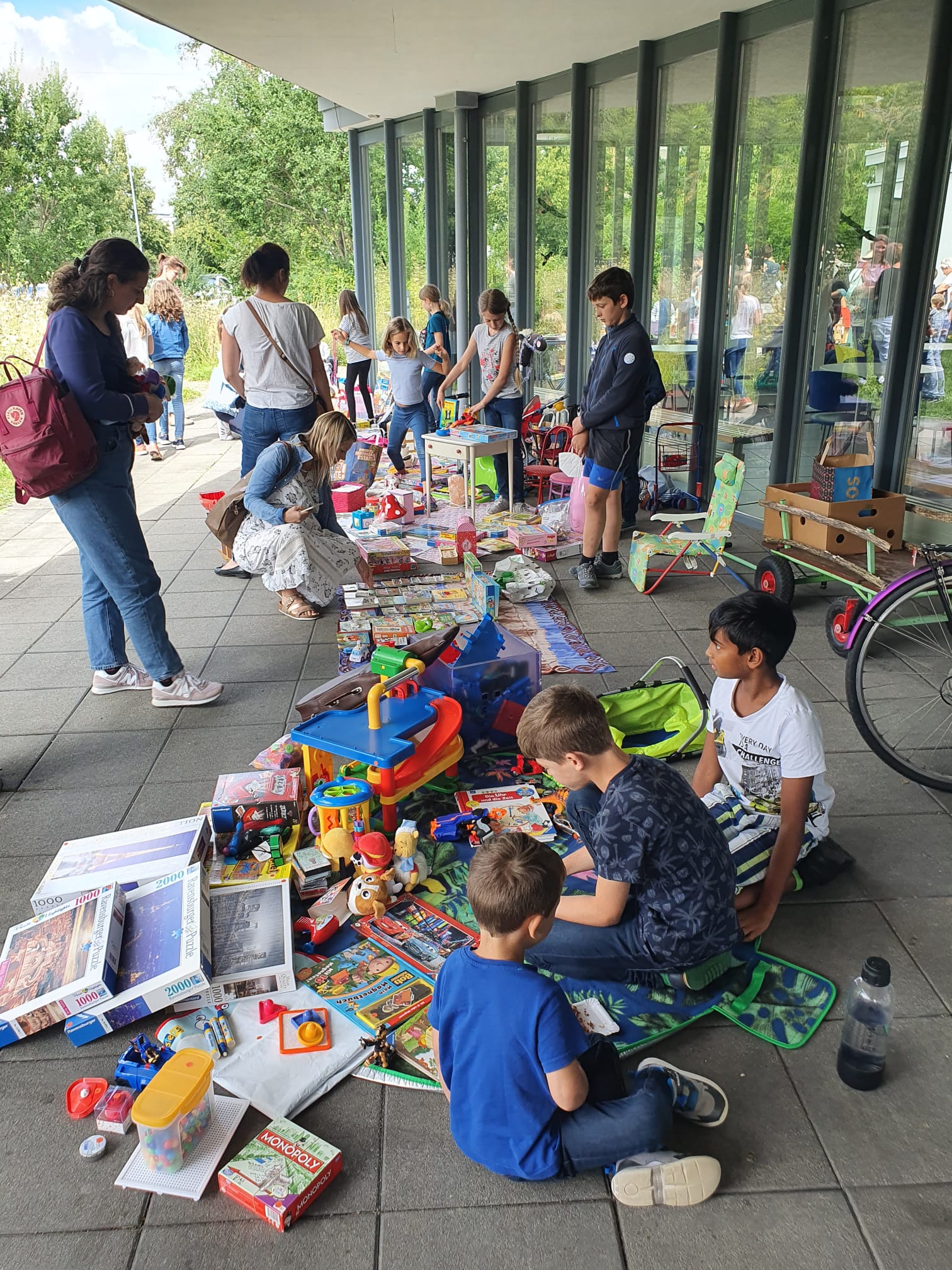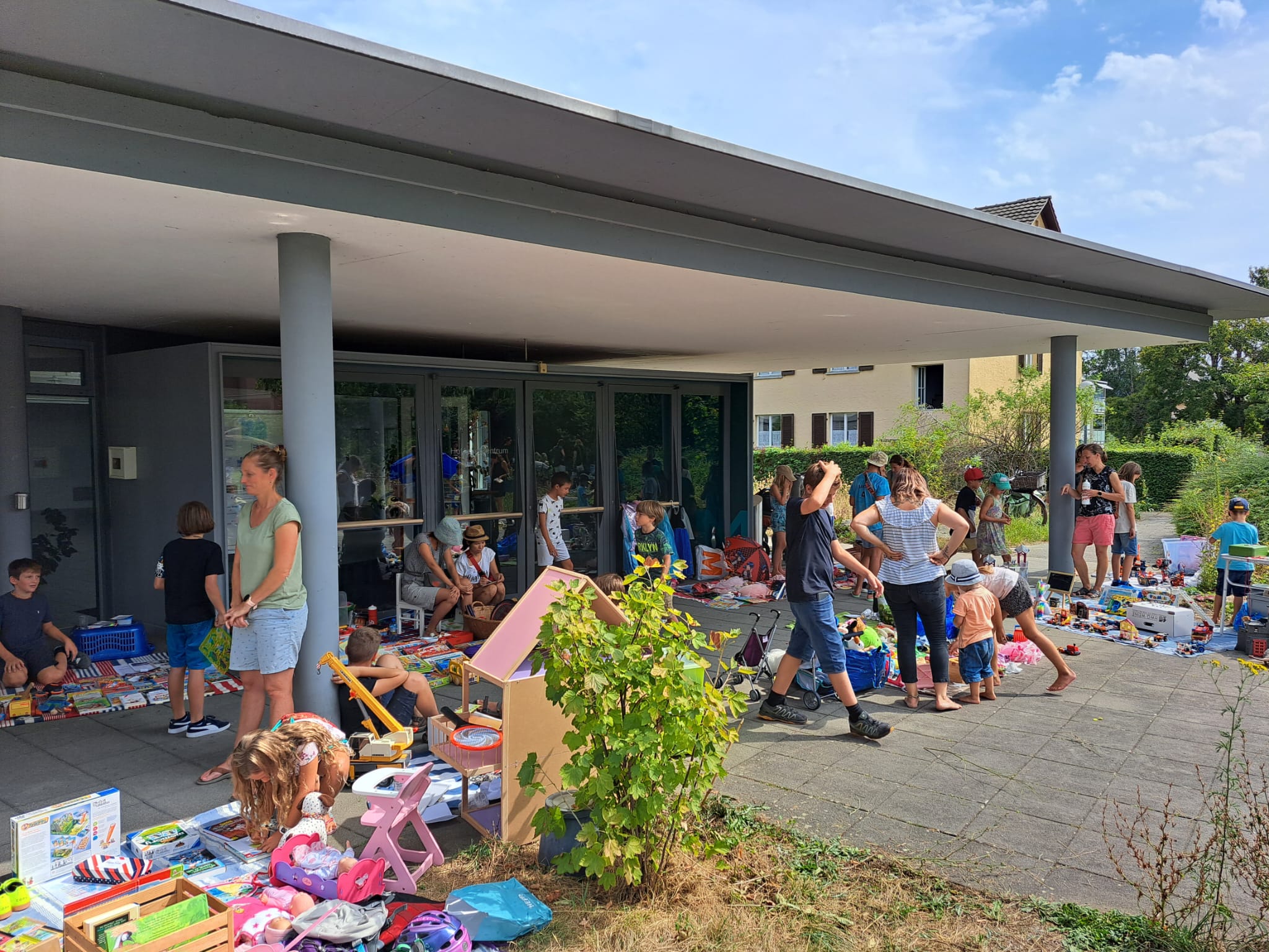 In der ersten Schulwoche nach den Sommerferien war im HofAckerZentrum wieder Spielzeugflomarkt angesagt. An rund 25 Ständen boten kleinere und grössere Verkäuferinnen und Verkäufer ihre Ware an: Puzzles, Fahrzeuge, Puppen und Bücher wechselten Besitzer. Anfangs wurde noch hart gefeilscht, gegen Schluss auch durchaus mal etwas verschenkt. Unterstützt wurde die tolle Stimmung durch eine gratis Glacé vom Migros und den traditionellen Ballonwettbewerb.