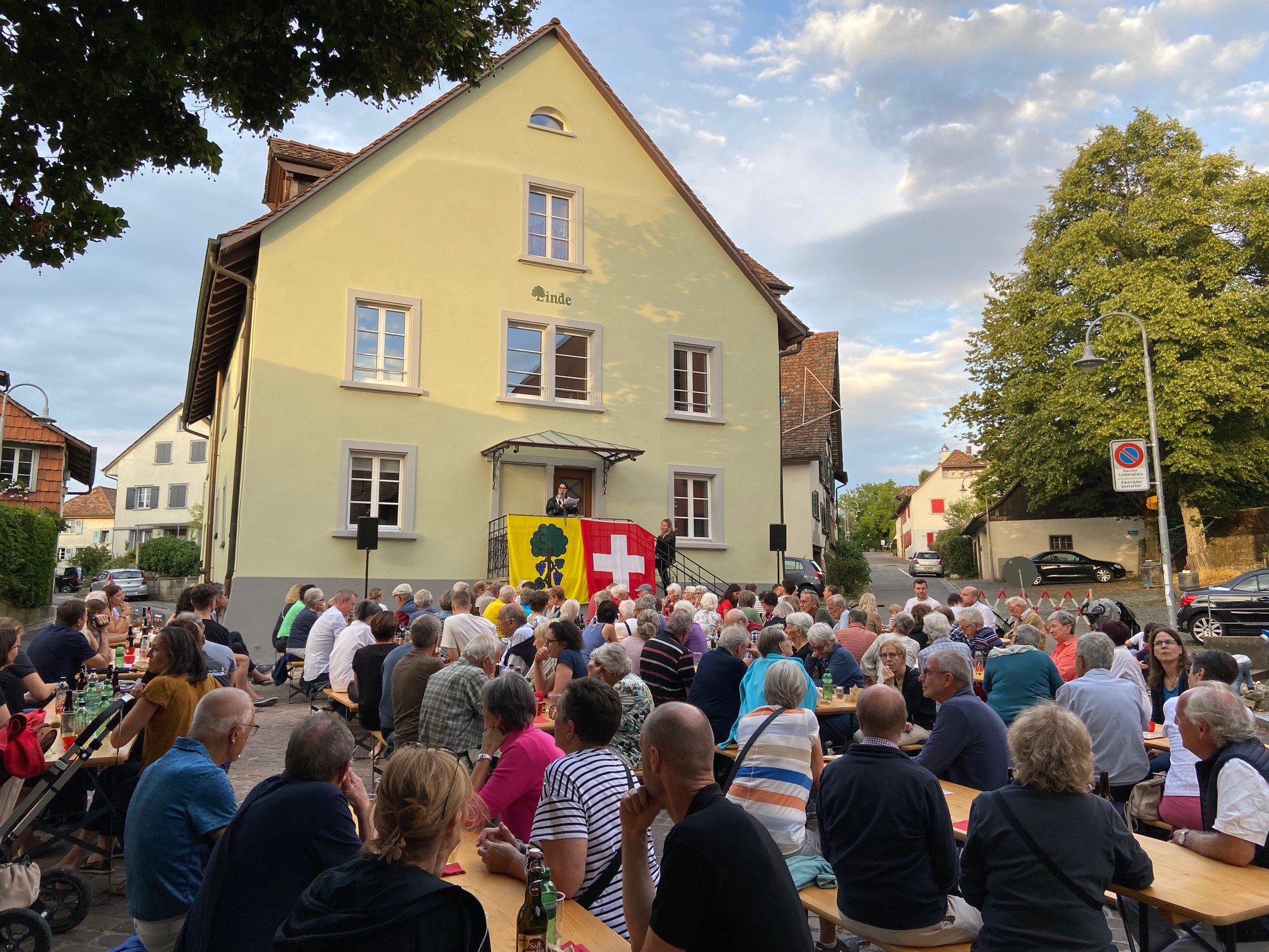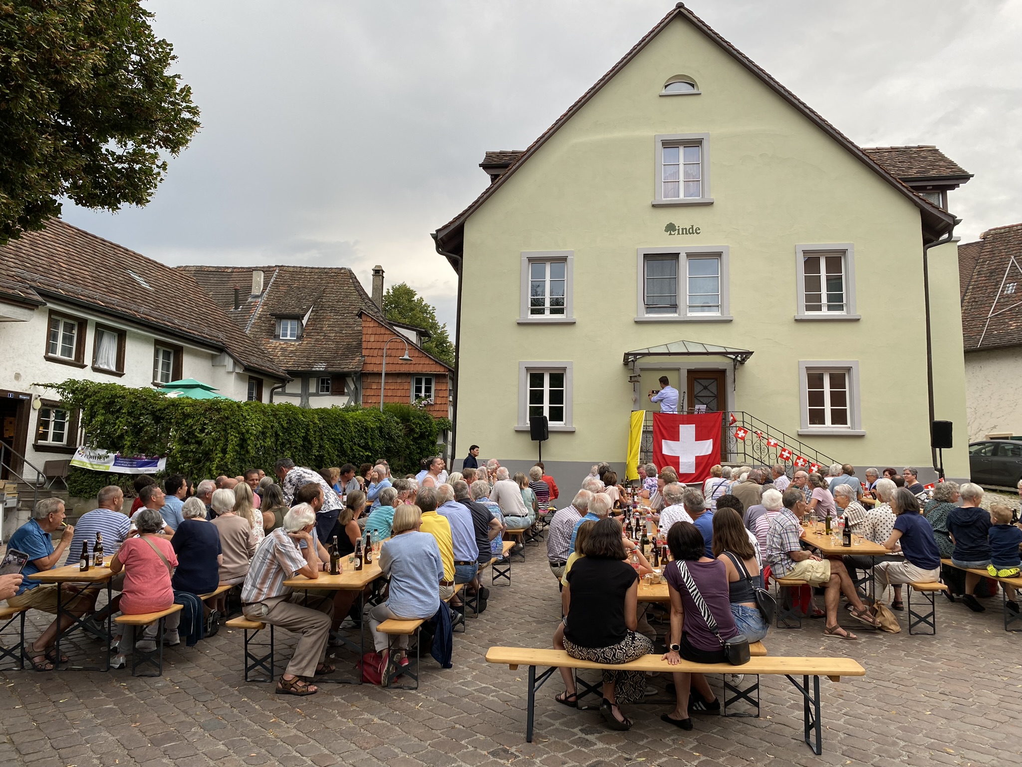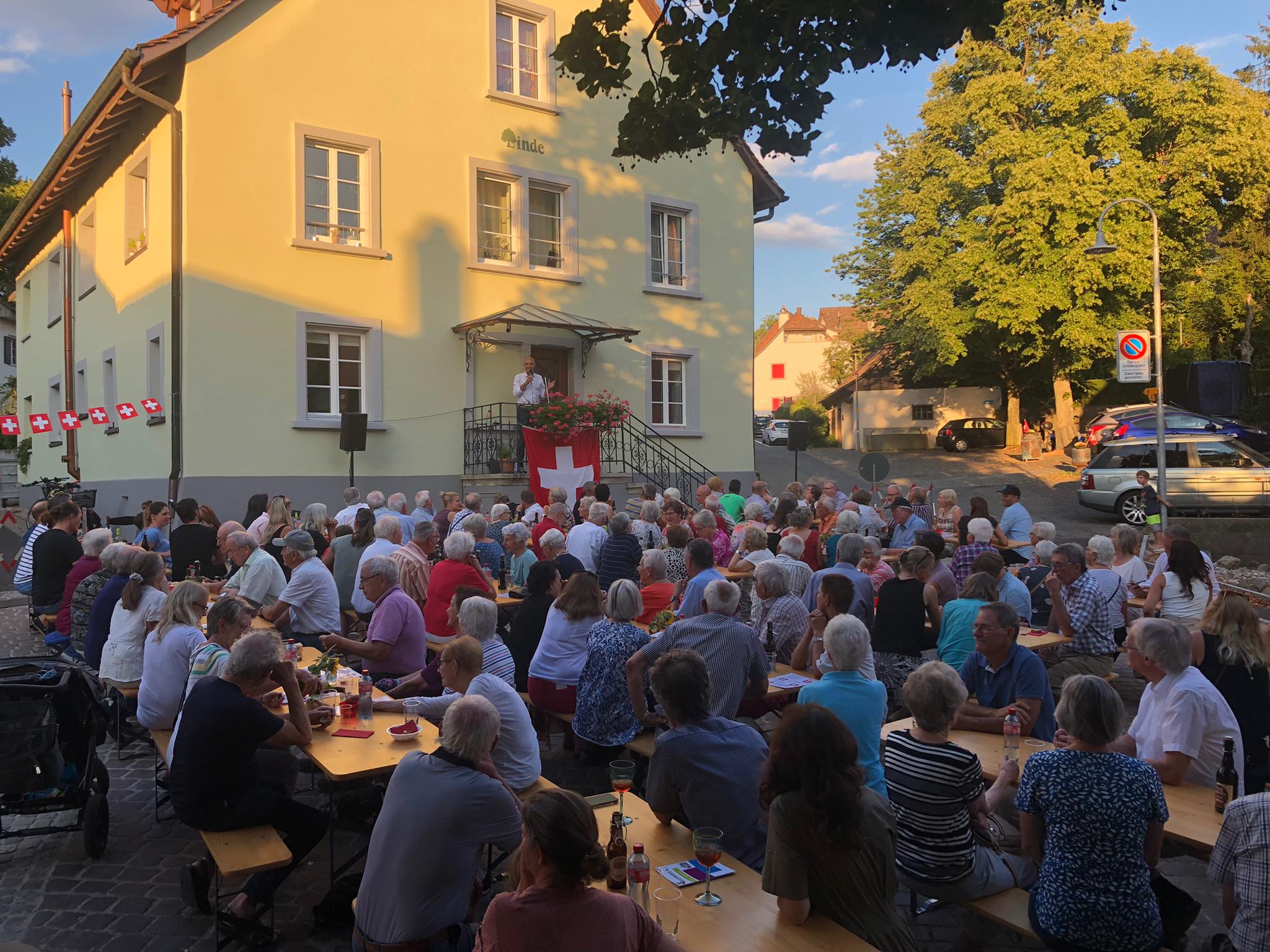 Bei strahlendem Wetter durften wir die diesjährige Bundesfeier wieder auf dem Lindenplatz feiern. Sportjournalist und -moderator Michael Stäuble sprach über die aktuellen Krisen, die ROlle der Schweiz als Schiedsrichter und die Wichtigkeit der Medien. Rund 150 Teilnehmende genossen den Abend mit offerierter Bratwurst.