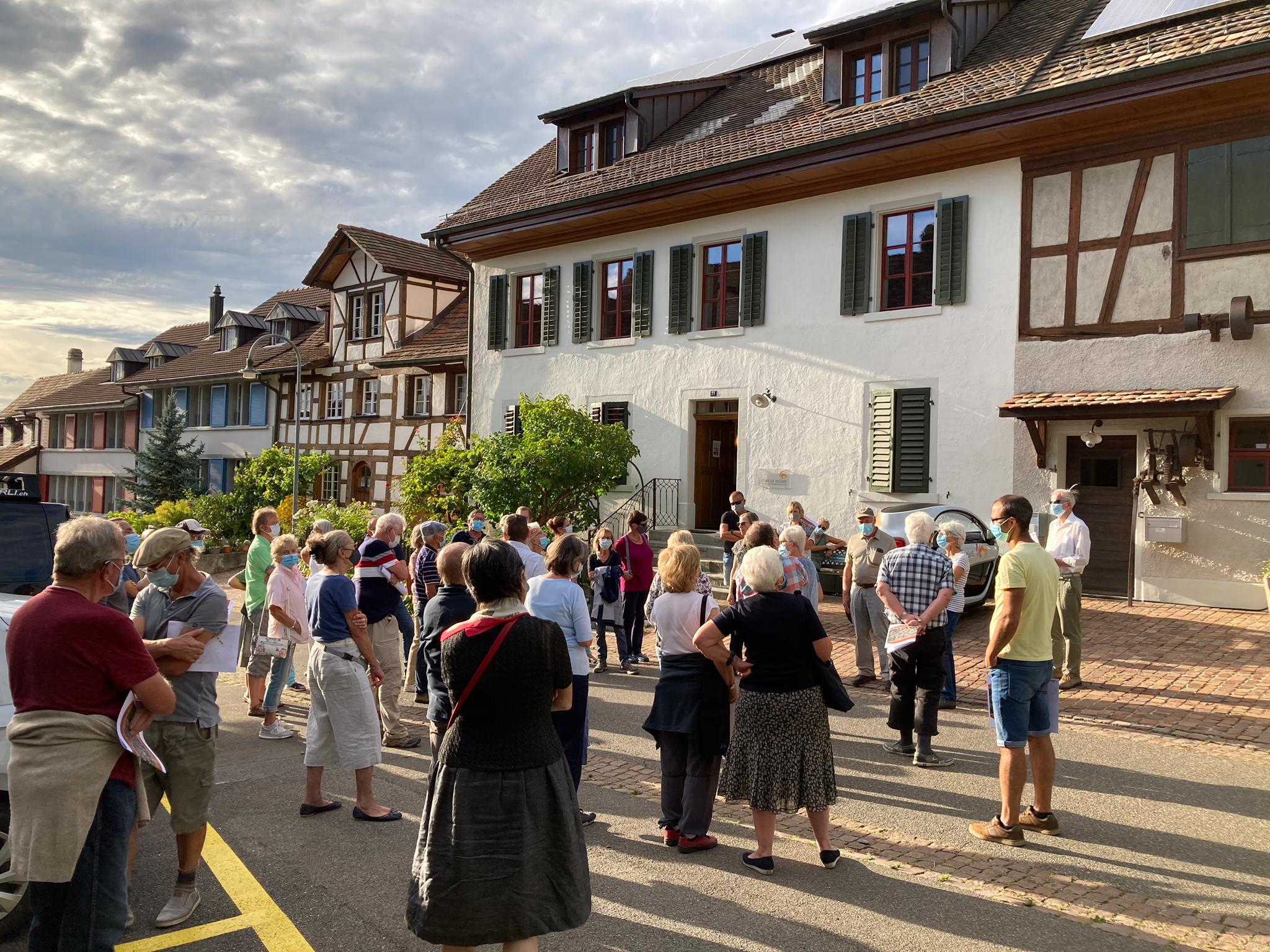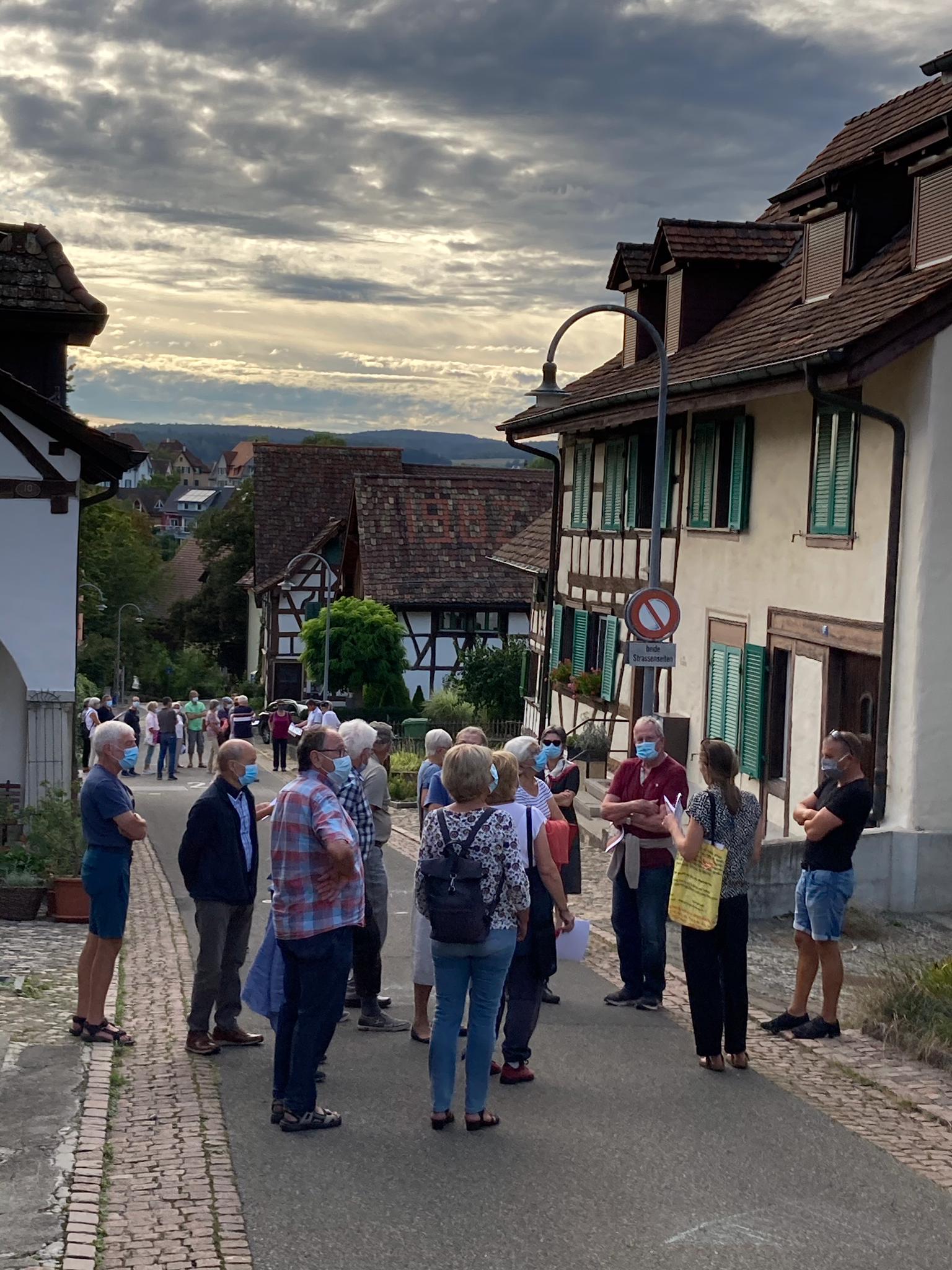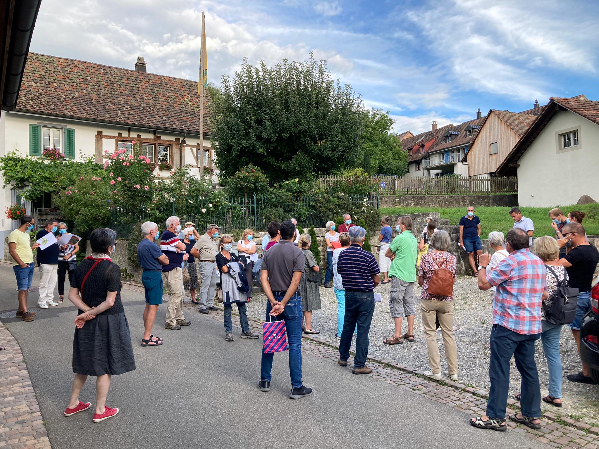 Rund 40 Mitglieder des Quartiervereins Buchthalen nahmen Ende August 2020 an der Dorfkernbegehung teil. Während der rund 1,5-stündigen Führung mit Marcel Angele, Leiter Stadtplanung, und Eva Nägeli, Kantonaler Denkmalschutz, lernten die Teilnehmenden viel über die Entstehung des Dorfkerns, die typischen Bauweisen und schützenswerte Details. Auch der Gestaltungsrichtplan wurde erklärt. Die Teilnehmenden, welche Corona-bedingt mit Masken ausgerüstet waren, lernten, dass Buchthalen 1840 lediglich 319 Einwohner hatte und erfuhren Spannendes zur Entwicklung der Strassennamen im Quartier. Bei einem reichhaltigen Apéro im Frohsinn genossen die Mitglieder den Austausch am schönen Sommerabend.