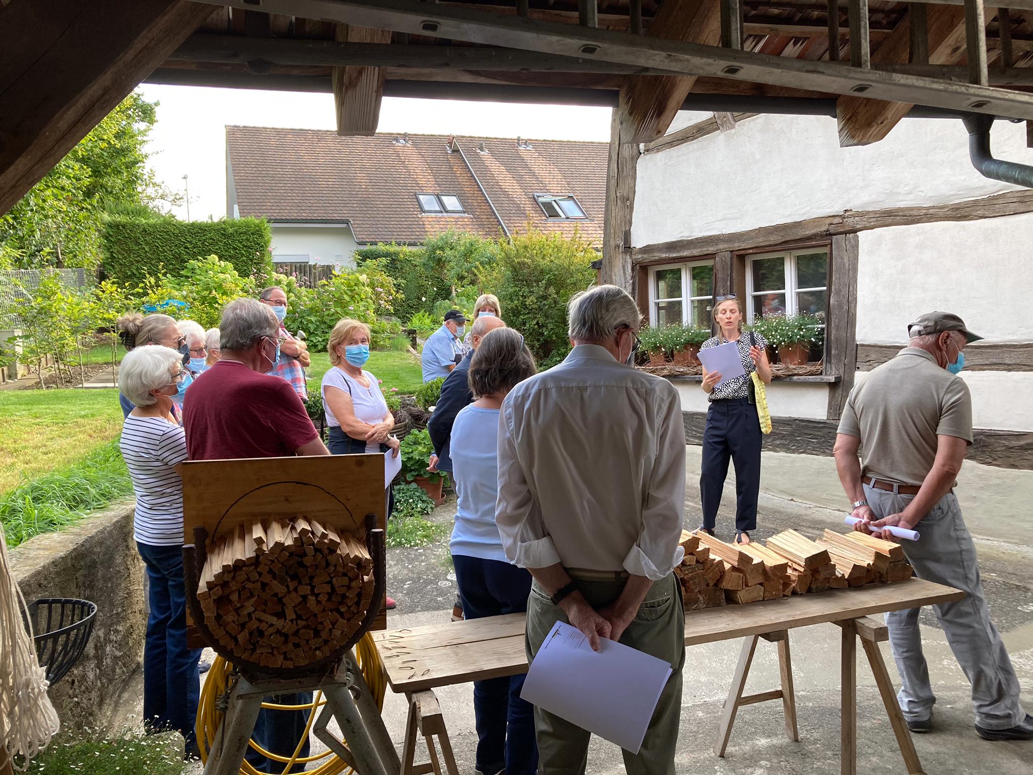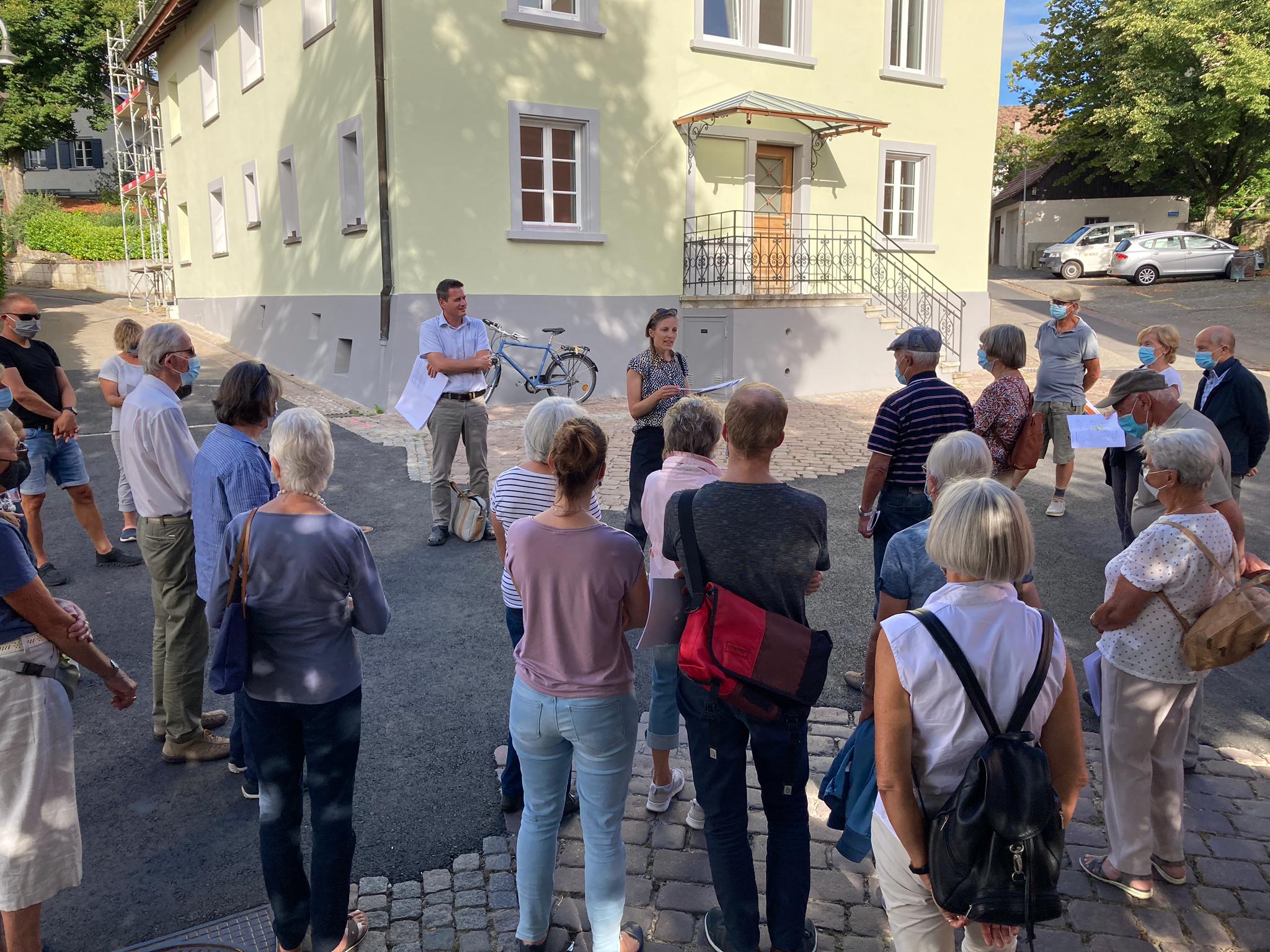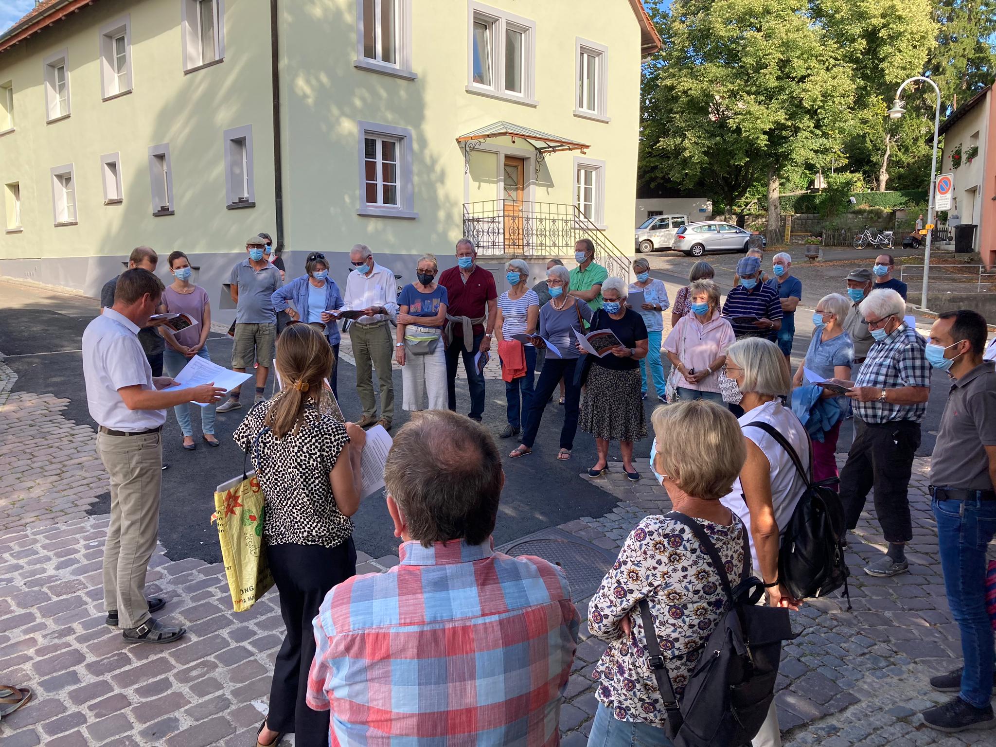 Rund 40 Mitglieder des Quartiervereins Buchthalen nahmen Ende August 2020 an der Dorfkernbegehung teil. Während der rund 1,5-stündigen Führung mit Marcel Angele, Leiter Stadtplanung, und Eva Nägeli, Kantonaler Denkmalschutz, lernten die Teilnehmenden viel über die Entstehung des Dorfkerns, die typischen Bauweisen und schützenswerte Details. Auch der Gestaltungsrichtplan wurde erklärt. Die Teilnehmenden, welche Corona-bedingt mit Masken ausgerüstet waren, lernten, dass Buchthalen 1840 lediglich 319 Einwohner hatte und erfuhren Spannendes zur Entwicklung der Strassennamen im Quartier. Bei einem reichhaltigen Apéro im Frohsinn genossen die Mitglieder den Austausch am schönen Sommerabend.