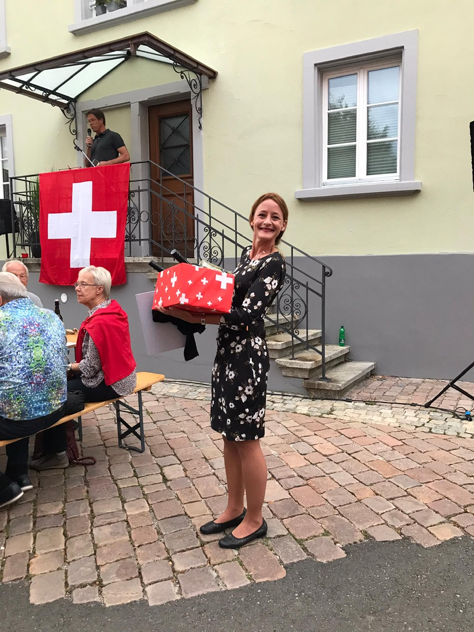 Rund 120 Personen genossen an der Bundesfeier des Quartiervereins Buchthalen den schönen Sommerabend auf dem Lindenplatz. Die neue Stadträtin Christine Thommen, die auch im Quartier wohnt, hielt ihre erste 1.Augustfeier-Rede und dies just an dem Ort, wo sie ihre erste Wohnung in Schaffhausen hatte. In ihrer charmanten und mit vielen persönlichen Anekdoten und Humor geschmückten Rede fragte Sie, warum uns der Wert der Heimat erst dann bewusst wird, wenn sie bedroht ist. Sie forderte alle auf, die Heimat nicht zu zerstören, sondern zu schützen und zu gestalten.