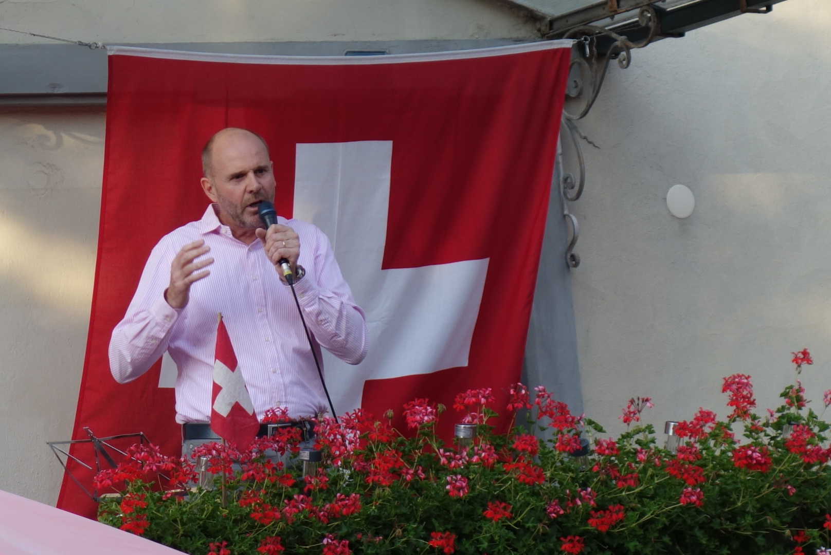 An der diesjährigen Bundesfeier auf dem Lindenplatz besuchte uns Wirtschaftsförderer Christoph Schärrer. Bei anfänglich schönstem Sonnenschein lauschten rund 150 Personen seinen Worten zur Entwicklung von Schaffhausen über die vergangenen Jahre und genossen dazu die vom Quartierverein gesponserte Bratwurst. Im Anschluss sangen alle gemeinsam den Schweizer Psalm.
