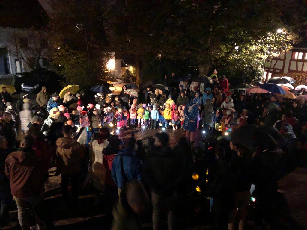 Nach einem corona-bedingten Unterbruch durften sich die Kindergärten 2021 wieder zum gemeinsamen Singen am Räbeliechtliumzug treffen. Aufgrund der Baustelle auf dem Lindenplatz strömten die rund 85 Kinder von den drei Quartierkindergärten mit ihren schön geschnitzten Räben von verschiedenen Richtungen auf den Schulhausplatz des Zündelguts. Mit dabei die Geschwister, die Eltern und Grosseltern.