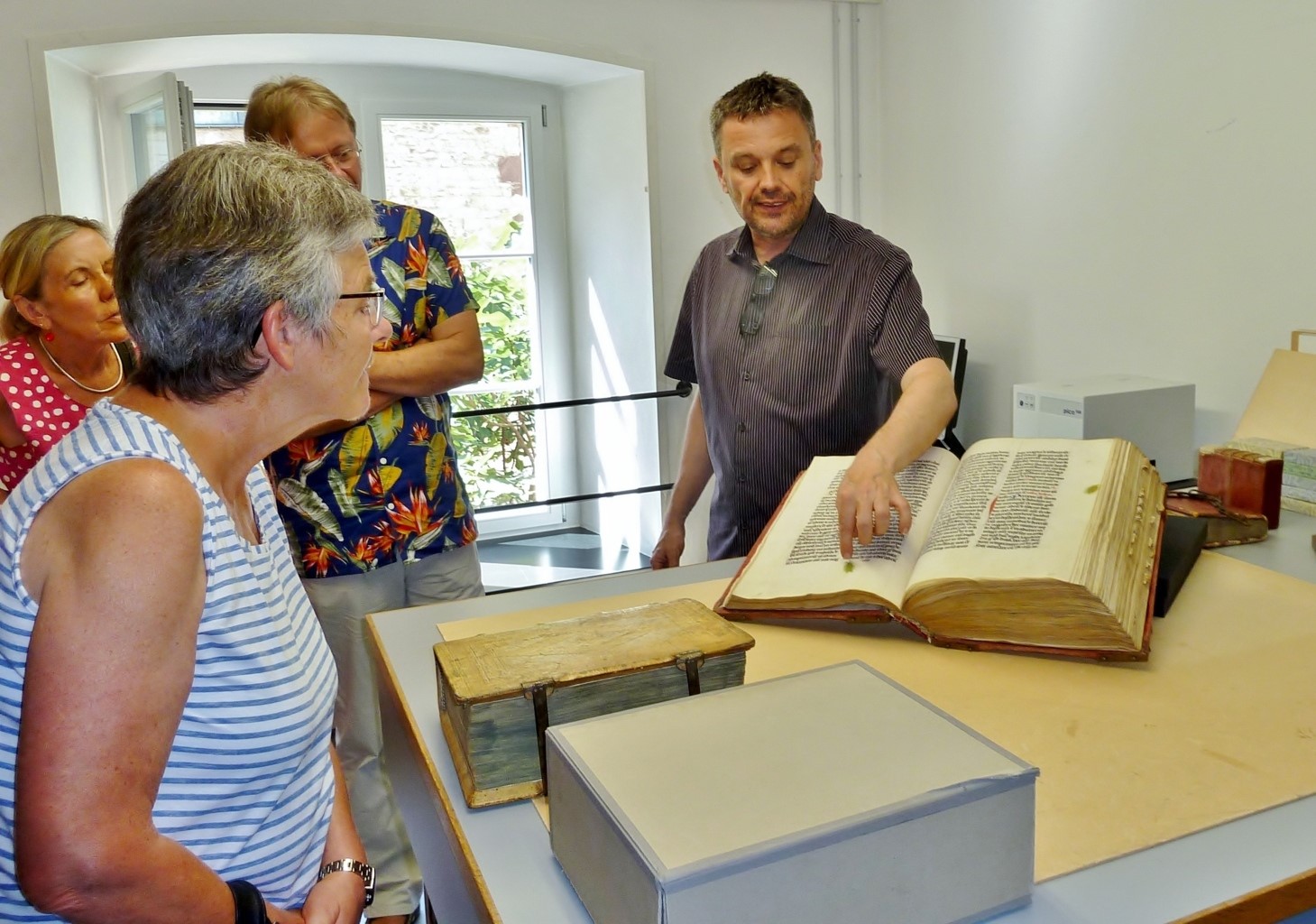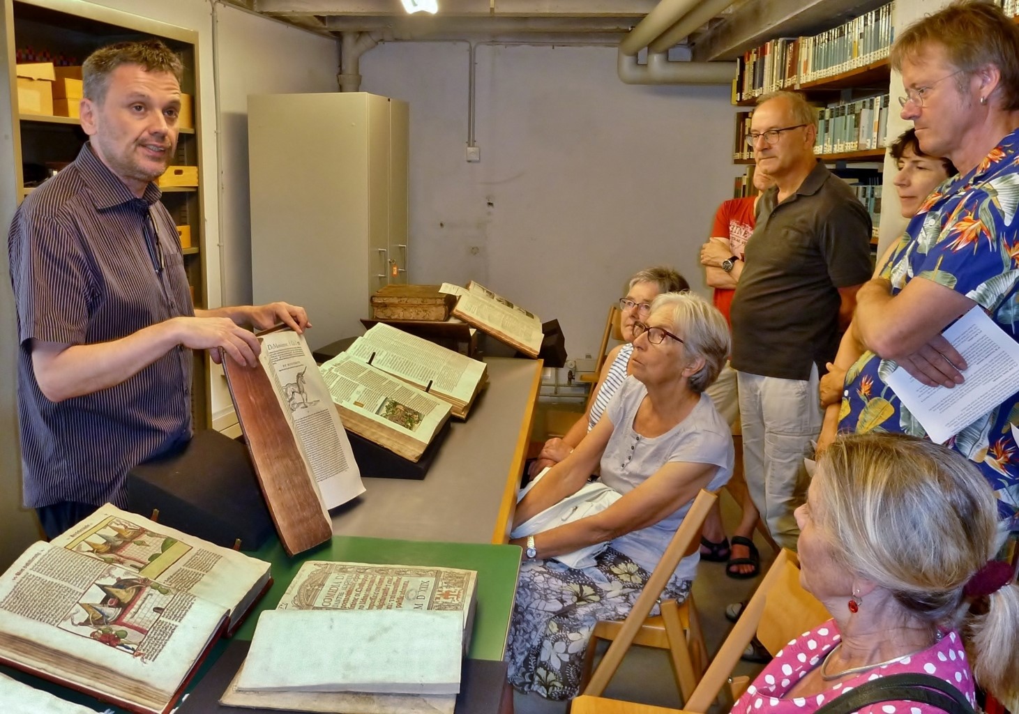 35 Personen besuchten am 31. August mit dem Quartierverein Buchthalen die Stadtbibliothek – eine Schatzkammer mit Wissen und Informationen vergangener Zeiten. Stadtbibliothekar Oliver Thiele zeigte alte Handschriften aber gewährte uns auch einen Einblick in die moderne digitale Bibliothek. Den informativen Nachmittag liessen wir anschliessend bei einem gemütlichen Apéro ausklingen.
