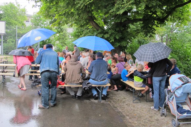 Von optimalem Flohmarkt-Wetter konnte man bei der ersten Durchführung des Quartierflohmarkts in Buchthalen, am 1. Juni keinesfalls sprechen. Entgegen aller Wetterprognosen und nach zahlreichen vorausgegangenen Regentagen war man aber schon mit einigen trockenen Zeitfenstern zufrieden. Und so genossen zahlreiche Besucherinnen und Besucher die vielseitigen Flohmarktstände im Quartier.