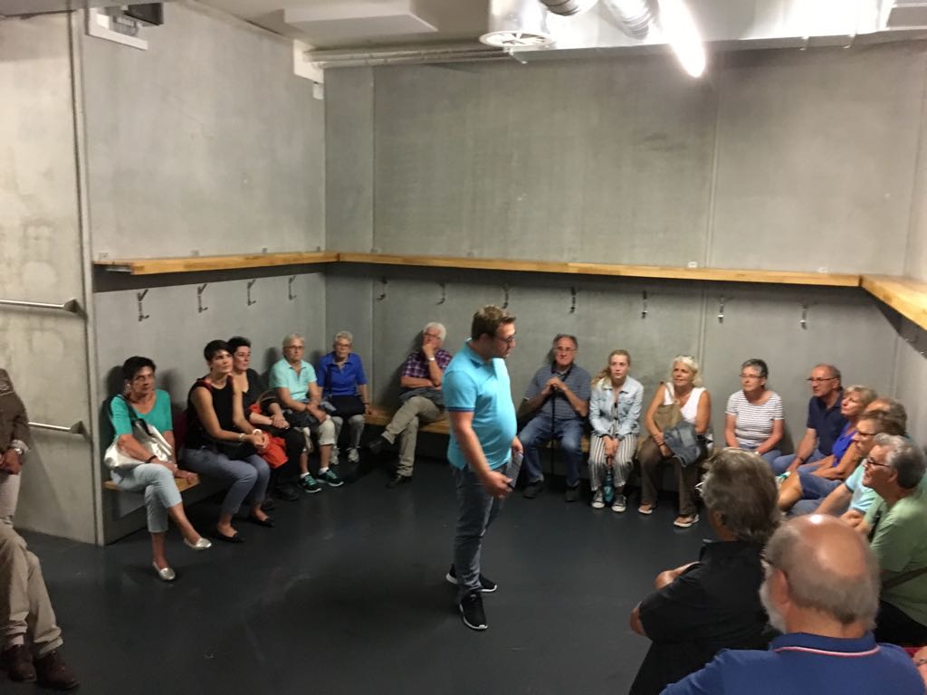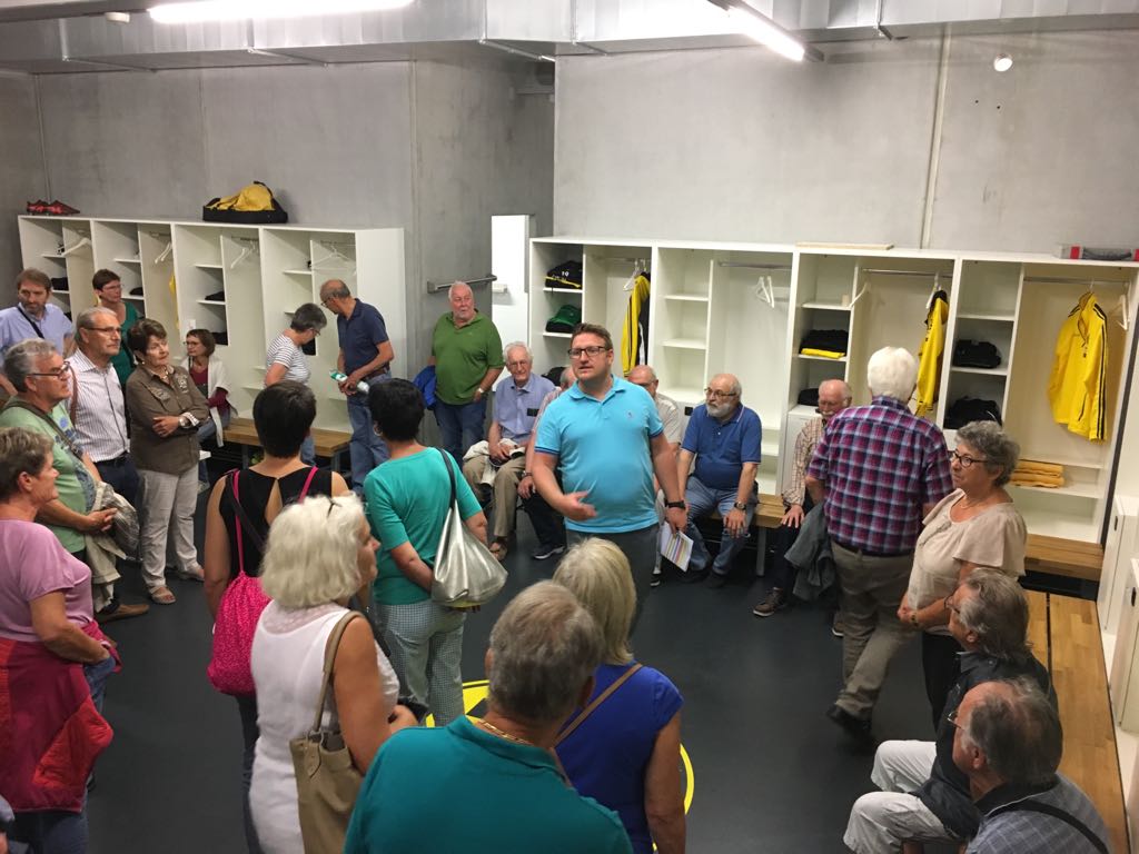 44 interessierte QV Mitglieder besuchten am 26. April die BBC Arena. Nach der Einführung inkl. der Vorstellung der im Juni zur Abstimmung kommenden Erweiterung durften wir bei einem Rundgang den Medienbereich, den Fitnessraum und die Übernachtungszimmer besichtigen und dabei viel Wissenswertes erfahren. Nach dem grosszügigen Apero waren wir eingeladen,